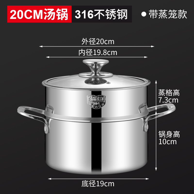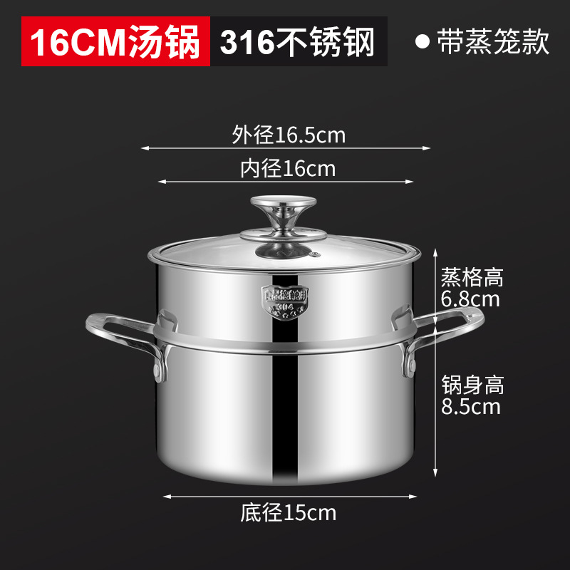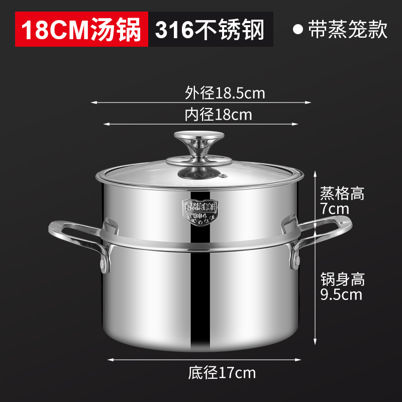 18 см трехслойная стальная кастрюля для супа 316 + сетка для пропаривания 304