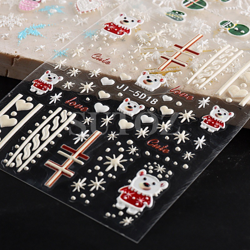 Главная страница > Трансграничная поставка новых 5D наклеек для дизайна ногтей Рождественская снежинка снеговик медведь трехмерные рельефные наклейки для ногтей