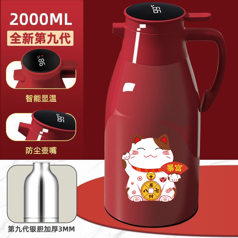Красный термос-чайник с цифровым дисплеем, объем 1,9 л + наклейка с изображением удачливого кота