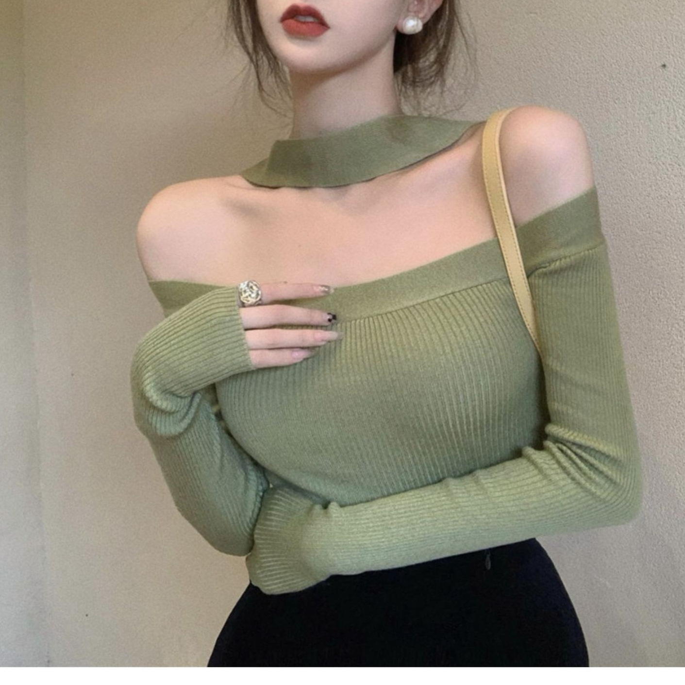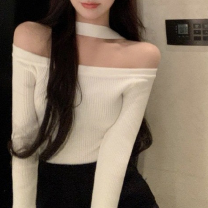 Главная страница > Топ с открытыми плечами для женщин, ранняя осень, новый стиль, сексуальная рубашка с открытыми плечами и воротником-стойкой, обтягивающая рубашка для похудения, трикотаж с длинными рукавами