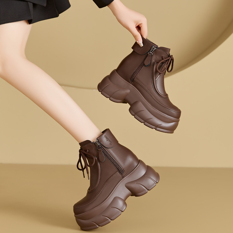 8575 Поднятые кексы с толстой подошвы Martin сапоги женщины осень и зима 2024 Новый повседневный тощий короткие сапоги подлинные