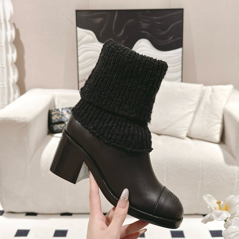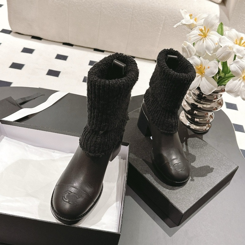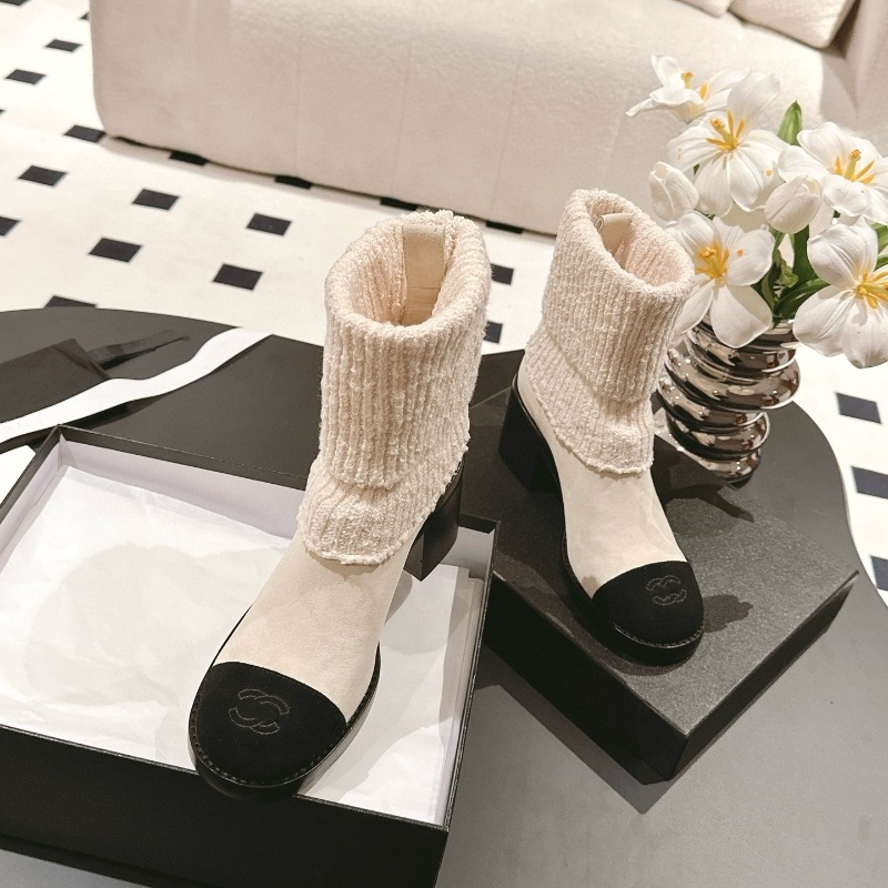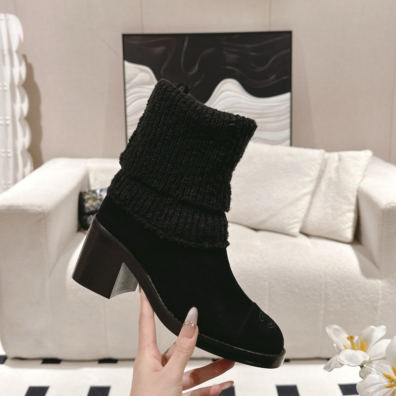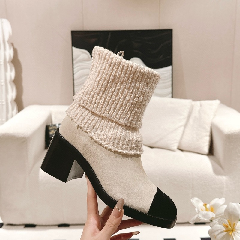 Главная страница > 24K Xiao Xiangfeng ~ Осенние и зимние замшевые вязаные шерстяные короткие сапоги дикий цвет два носки мягкие клейкие трикотажные средние носок сапоги