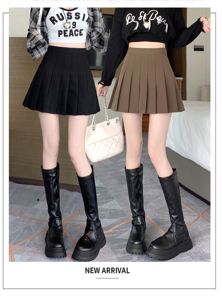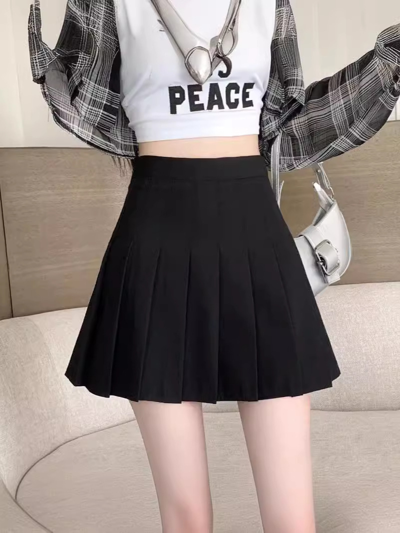 Главная страница > 2024 дикая черная плиссированная юбка колледжа Юбка весной и летом высокая талия тонкая JK короткая юбка анти-легкая юбка