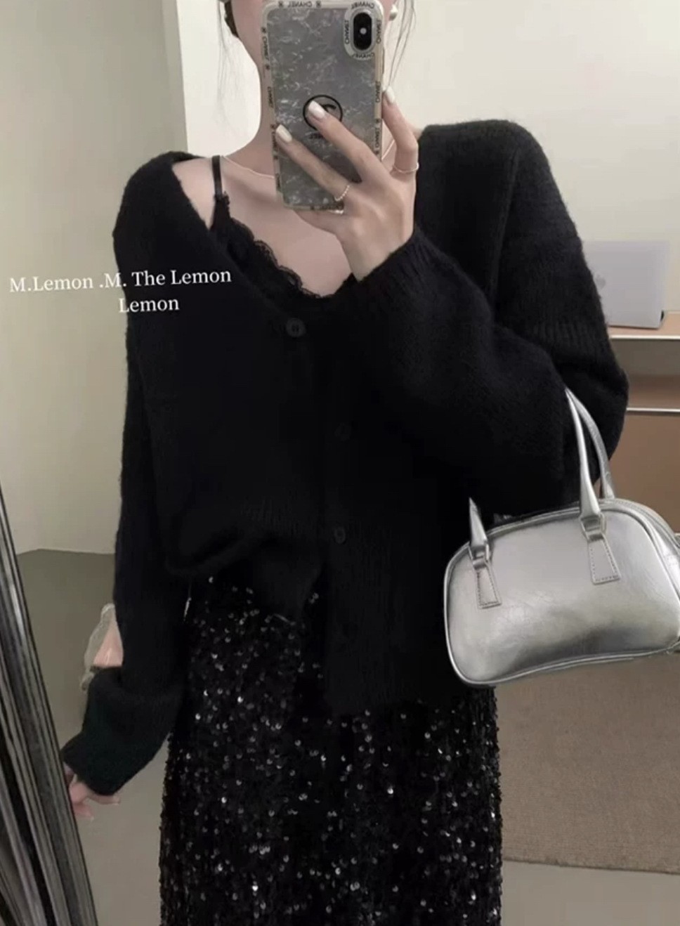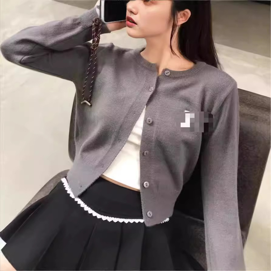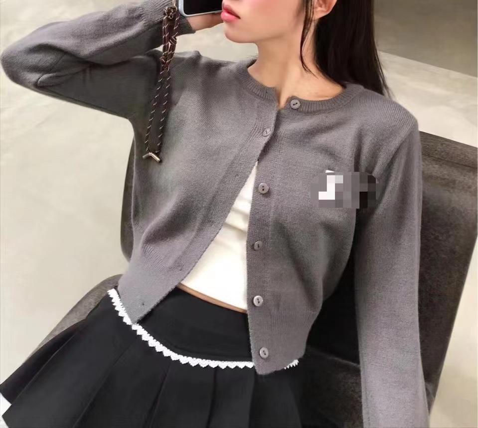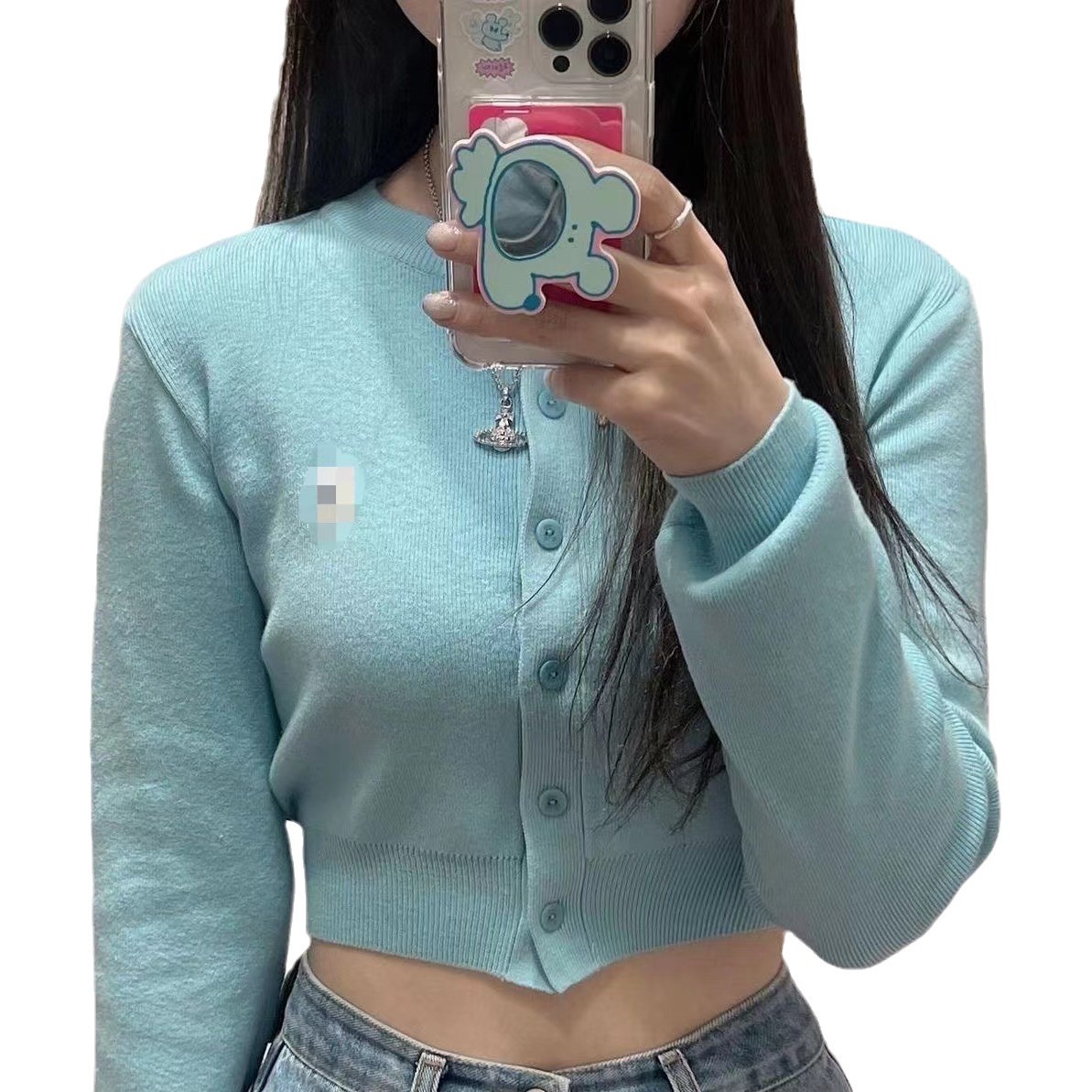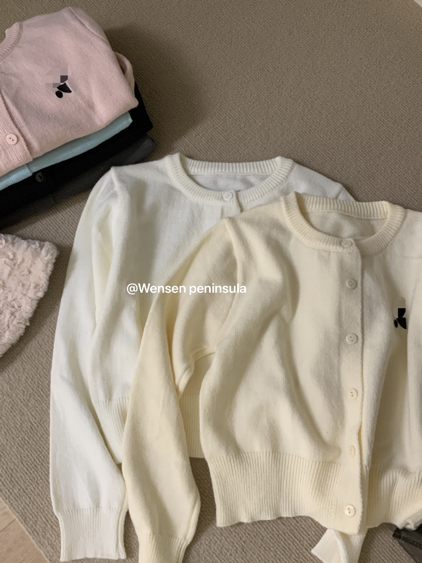Главная страница > Ka Yi Da Lu Si тот же розовый трикотажный кардиган с длинными рукавами с вышивкой с круглым вырезом