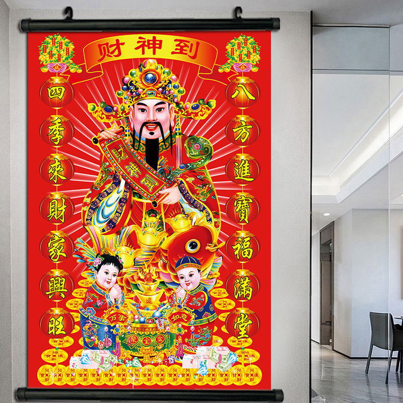 Бог богатства повесил картины, чтобы открыть картины, Бог богатства, чтобы нарисовать деньги, чтобы поклониться статуе Будды