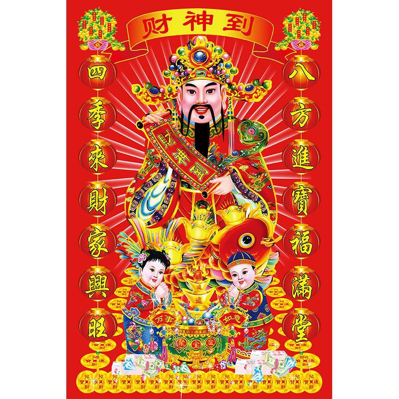 Главная страница > Бог богатства повесил картины, чтобы открыть картины, Бог богатства, чтобы нарисовать деньги, чтобы поклониться статуе Будды