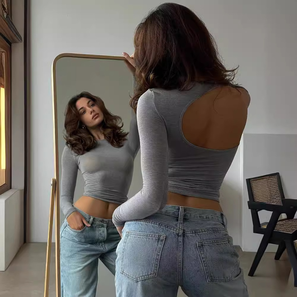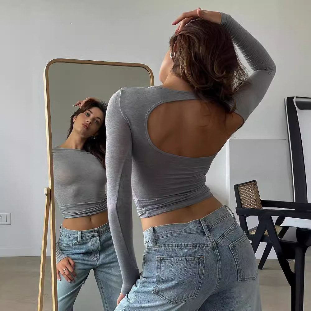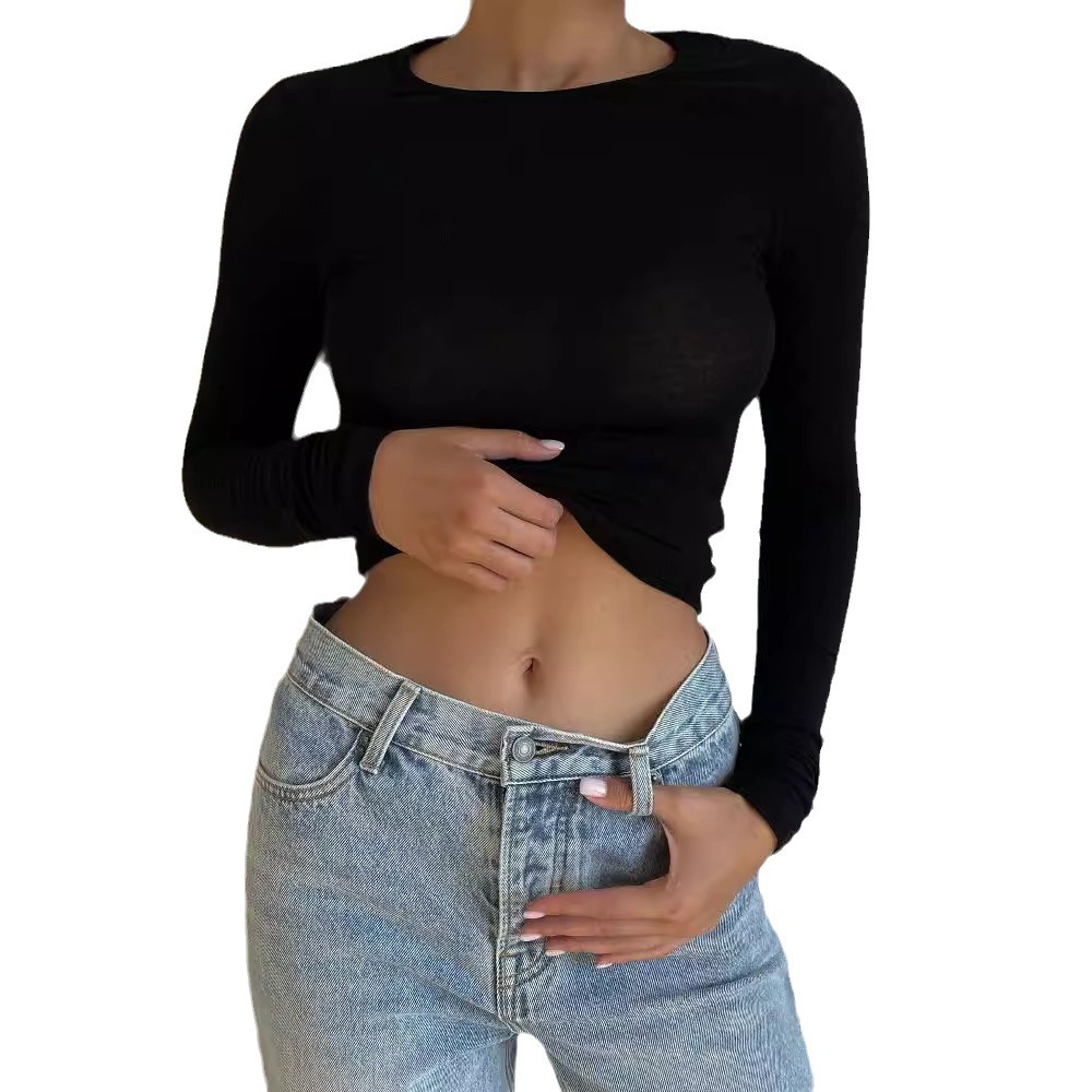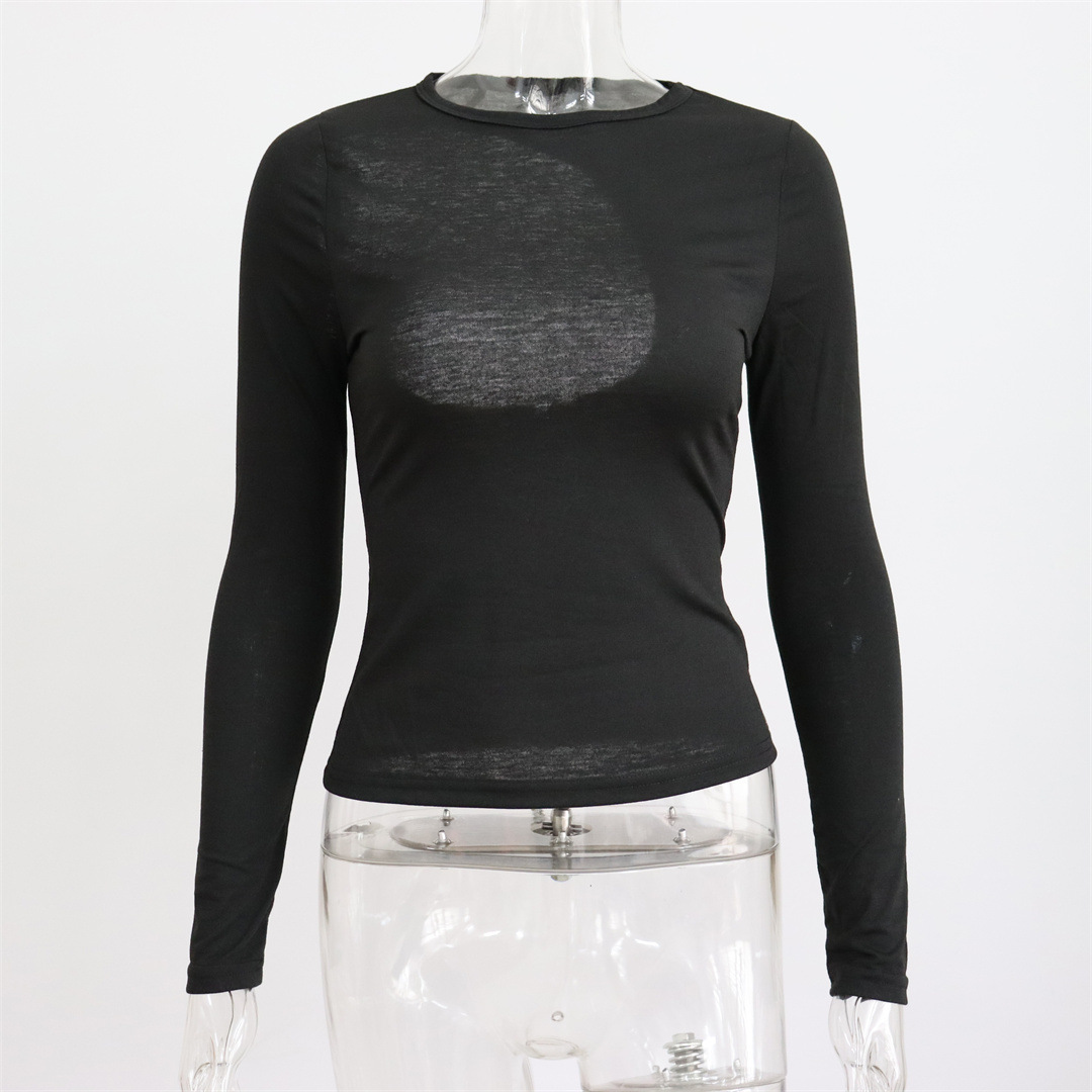 Главная страница > Футболка с длинным рукавом футболка женская европейская и американская сексуальная футболка с круглым вырезом и полым вырезом 2022 осень-зима повседневная обтягивка