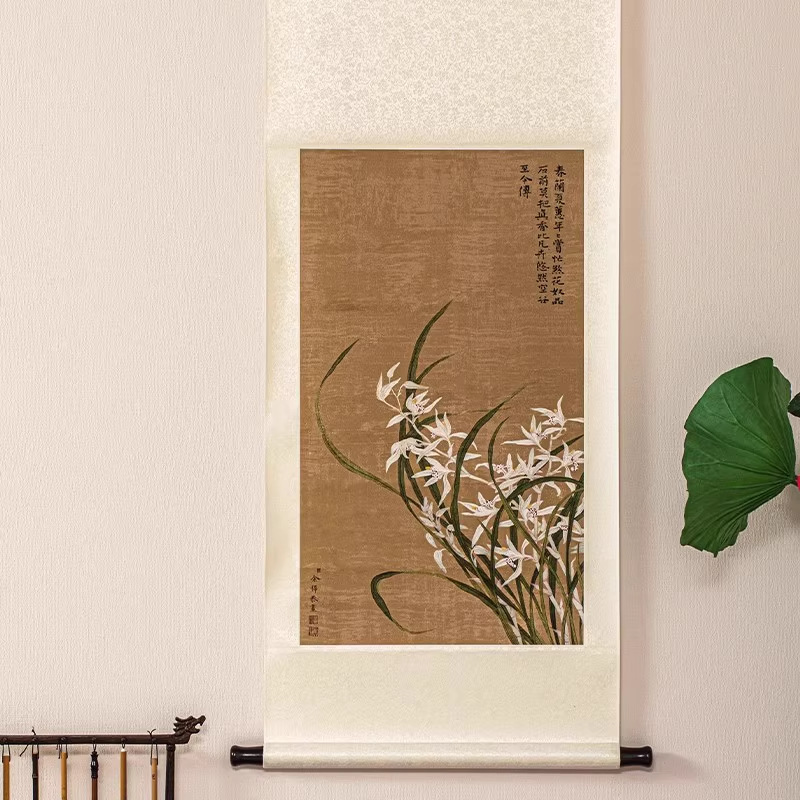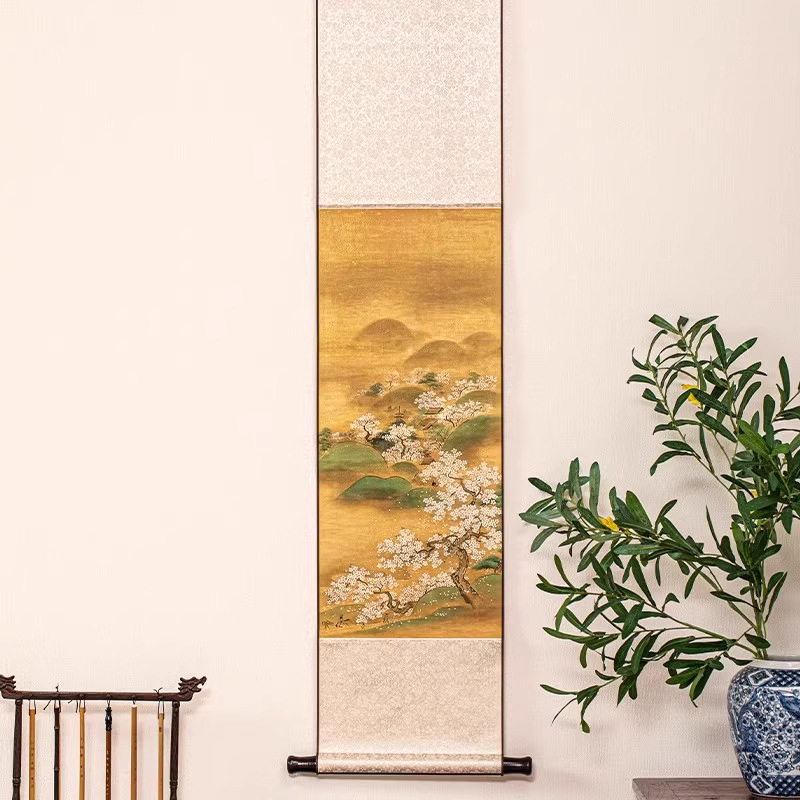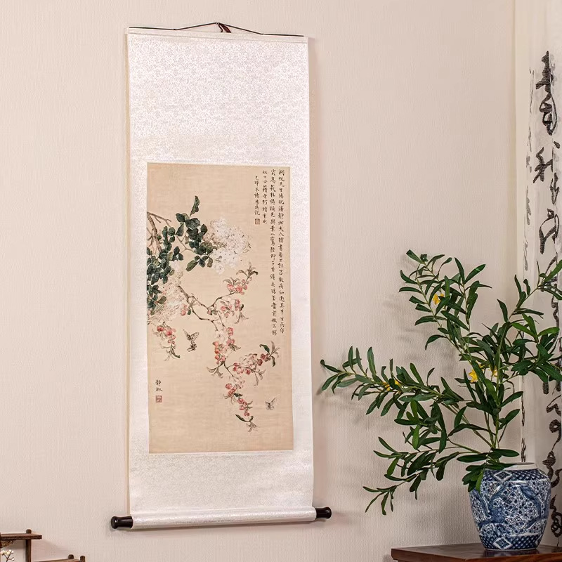 Растительная шелковая ткань, рисовая бумага, свиток, подвесная картина