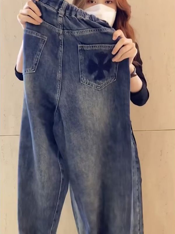 Большой размер толстая сестра с высокой талией прямые джинсы женские весенние и осенние свободные тонкие повседневные дикие брюки из редьки Харуна