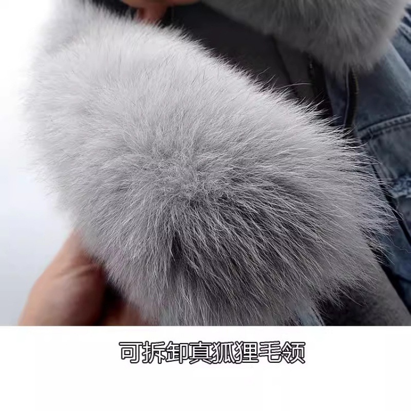Главная страница > Осень-зима 2022, новинка, лисьий мех, воротник, подкладка из кроличьего меха, модная маленькая джинсовая куртка, женская короткая верхняя куртка