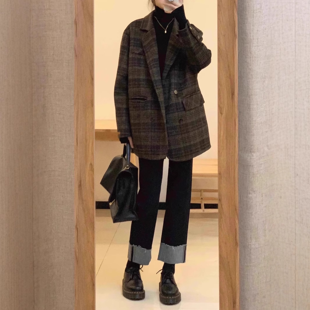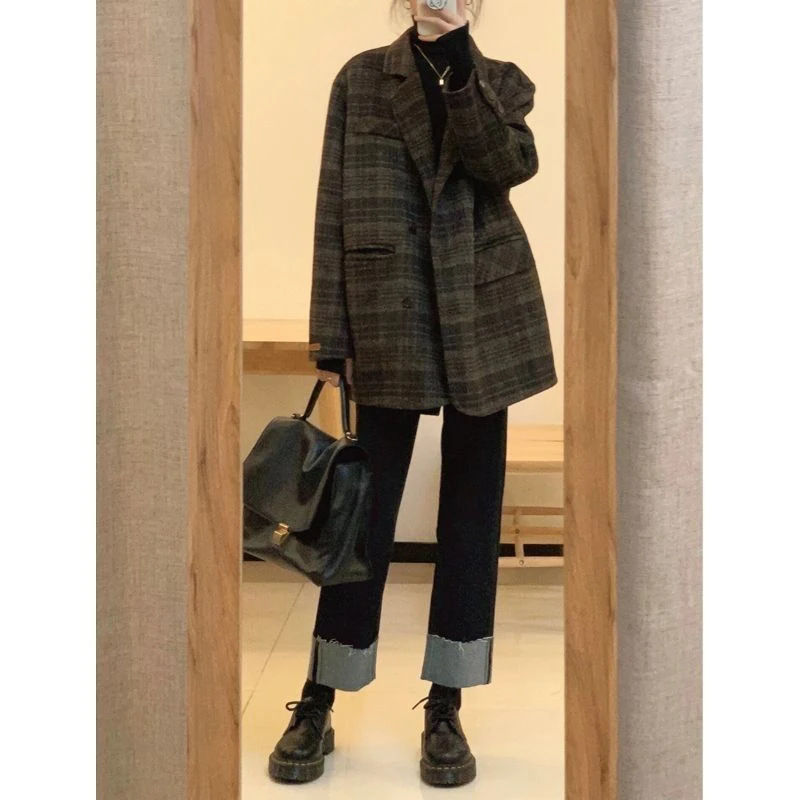 Главная страница > Клетчатый костюм из шерстяной ткани для женщин, осень-зима 2025, утолщенная верхняя одежда, высококачественная зимняя шерстяная верхняя одежда A2463