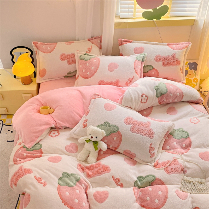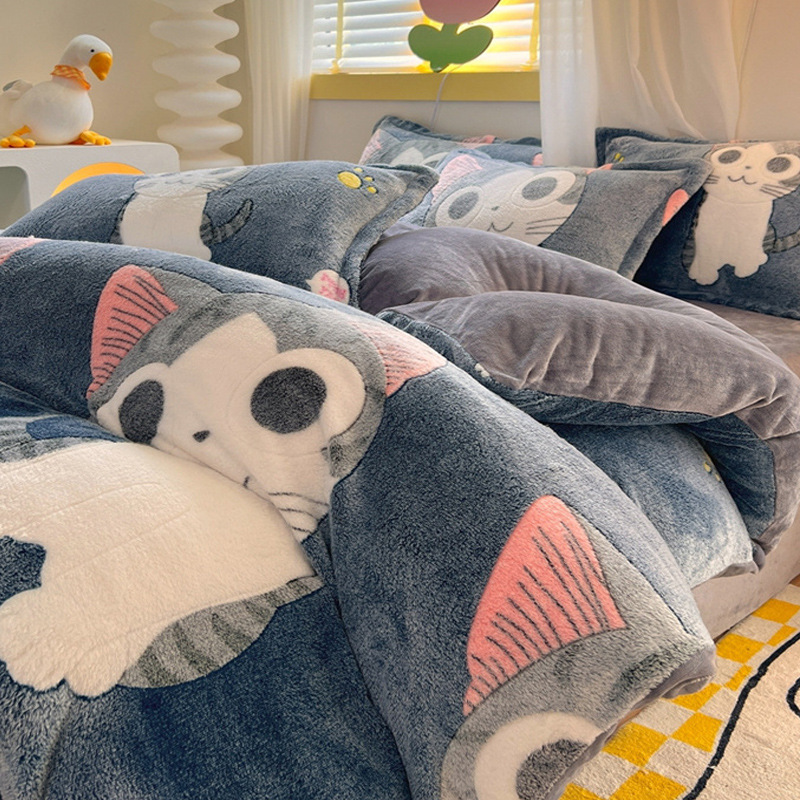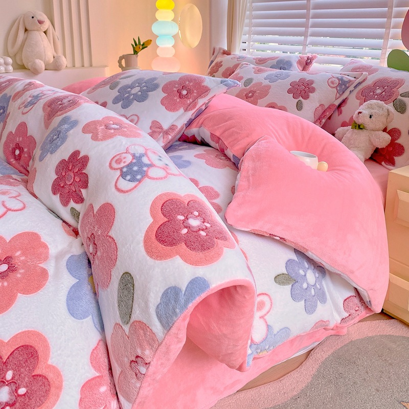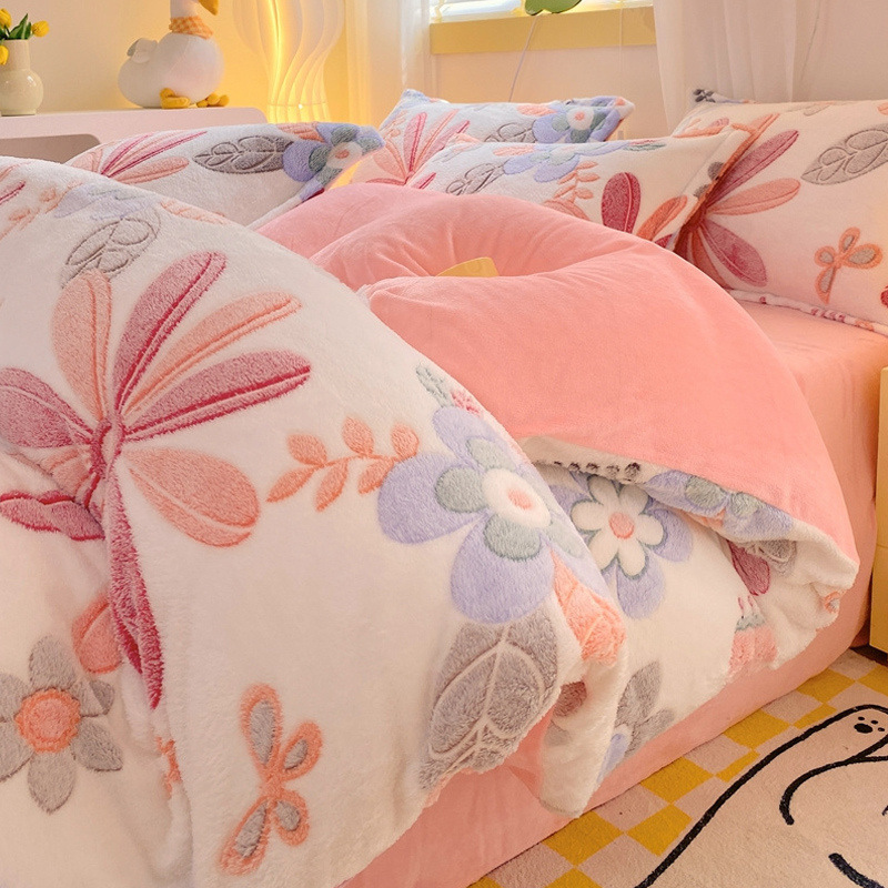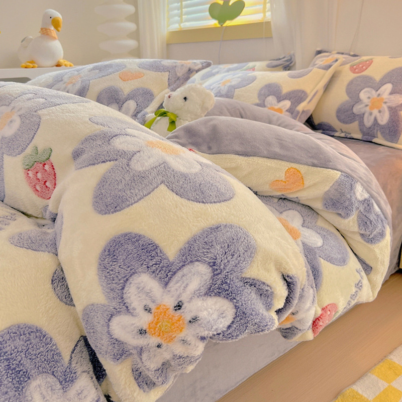 Главная страница > Зимний утолщенный коралловый флис, четыре предмета, молочный флис, простыня, пододеяльник, фланелевая кровать, три предмета, флис из снежинок