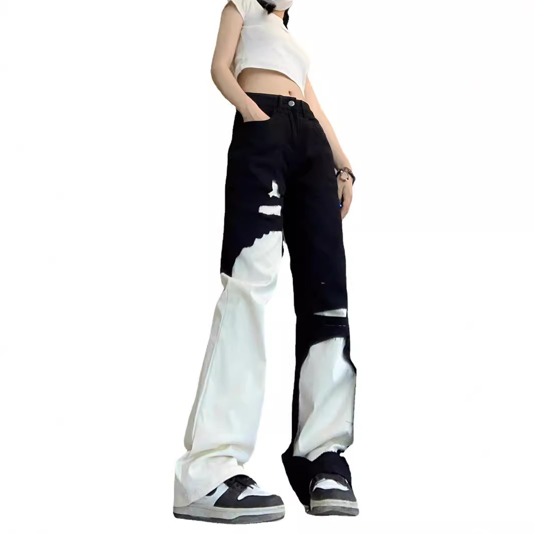 Главная страница > Побочные джинсы новые дыры черно-белые свободные прямые брюки