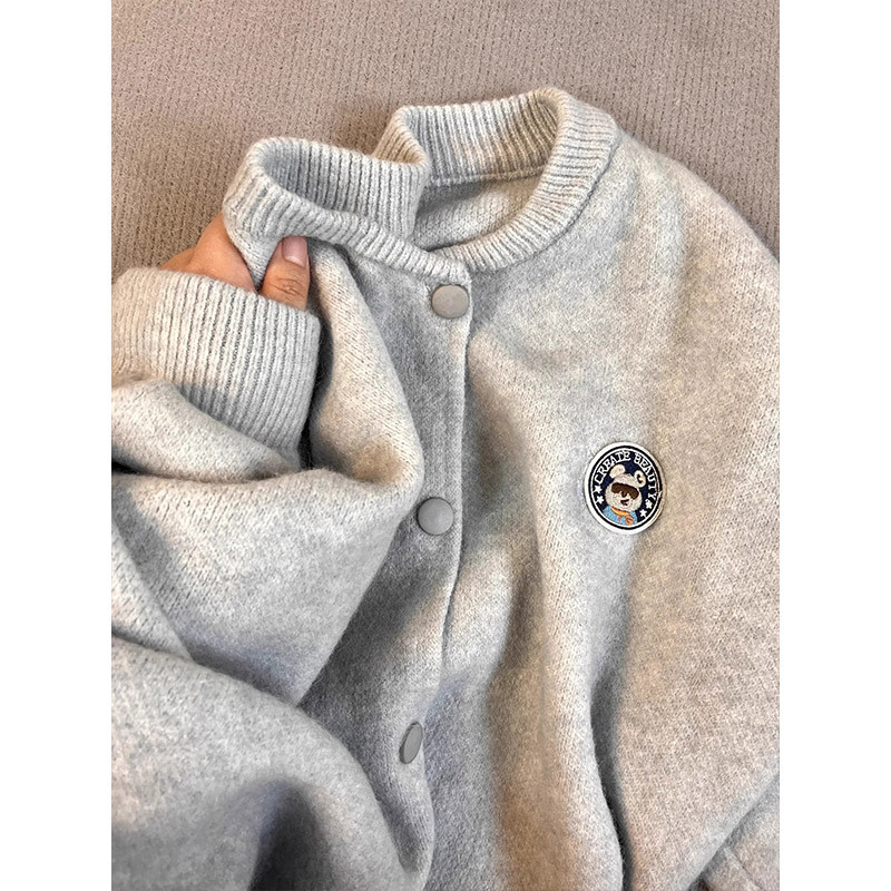 Главная страница > Мягкий клейкий медведь вышитый свитер куртка женский 2025 новый весенний и осенний круглый воротник наружный толстый свитер кардиган топ