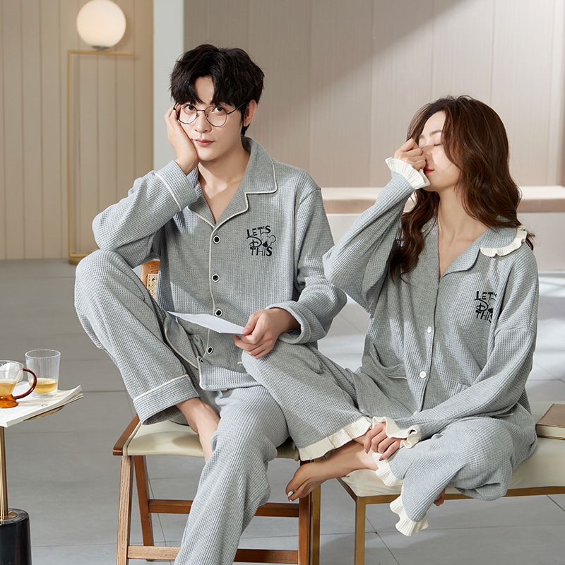Пара пижам женская весна и осень мультфильм сладкий кардиган с длинными рукавами студенческий набор мужской осенней и зимней домашней одежды можно носить на улице