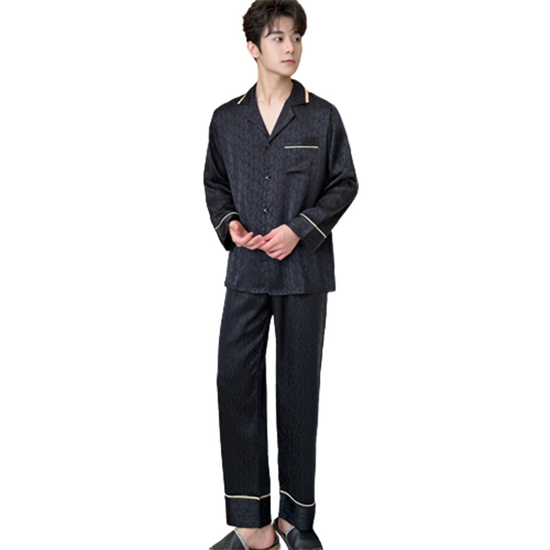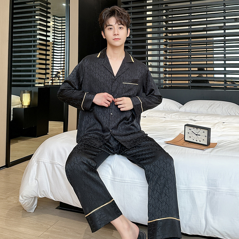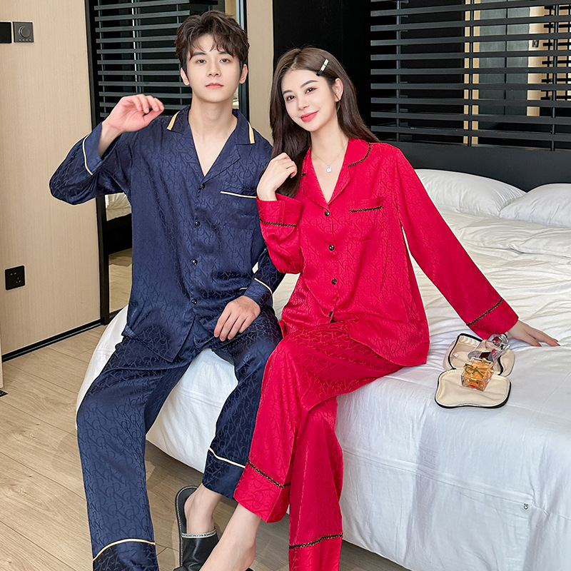 Главная страница > Пара пижам Весна и осень Ледяной шелк Жаккардовый комплект из двух предметов с длинным рукавом Мужская и женская новая шелковая Домашняя одежда больших размеров оптом