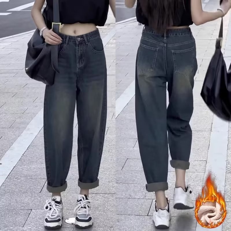 Главная страница > Женские Гаремные джинсы с высокой талией на осень и зиму, новые грушевидные фигуры больших размеров, свободные брюки для похудения в стиле ретро для папы