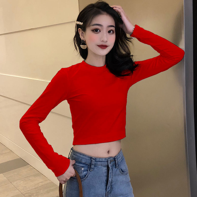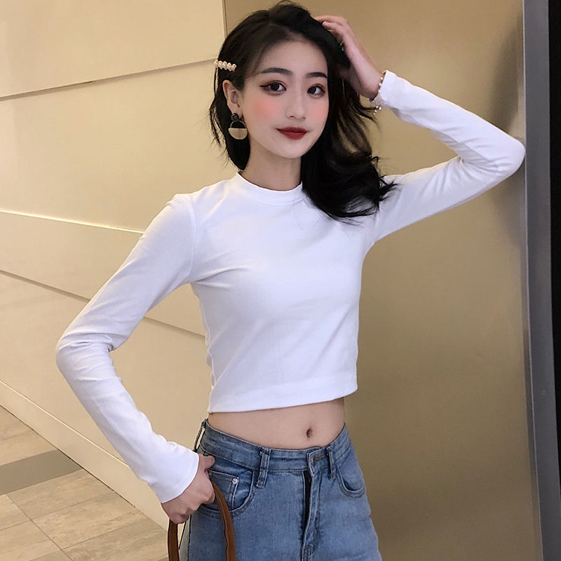 Главная страница > Новинка 2025, летняя женская рубашка с полуводолазкой и длинными рукавами, короткая студенческая футболка в корейском стиле с высокой талией, сексуальная женская футболка с оголомлением пупка