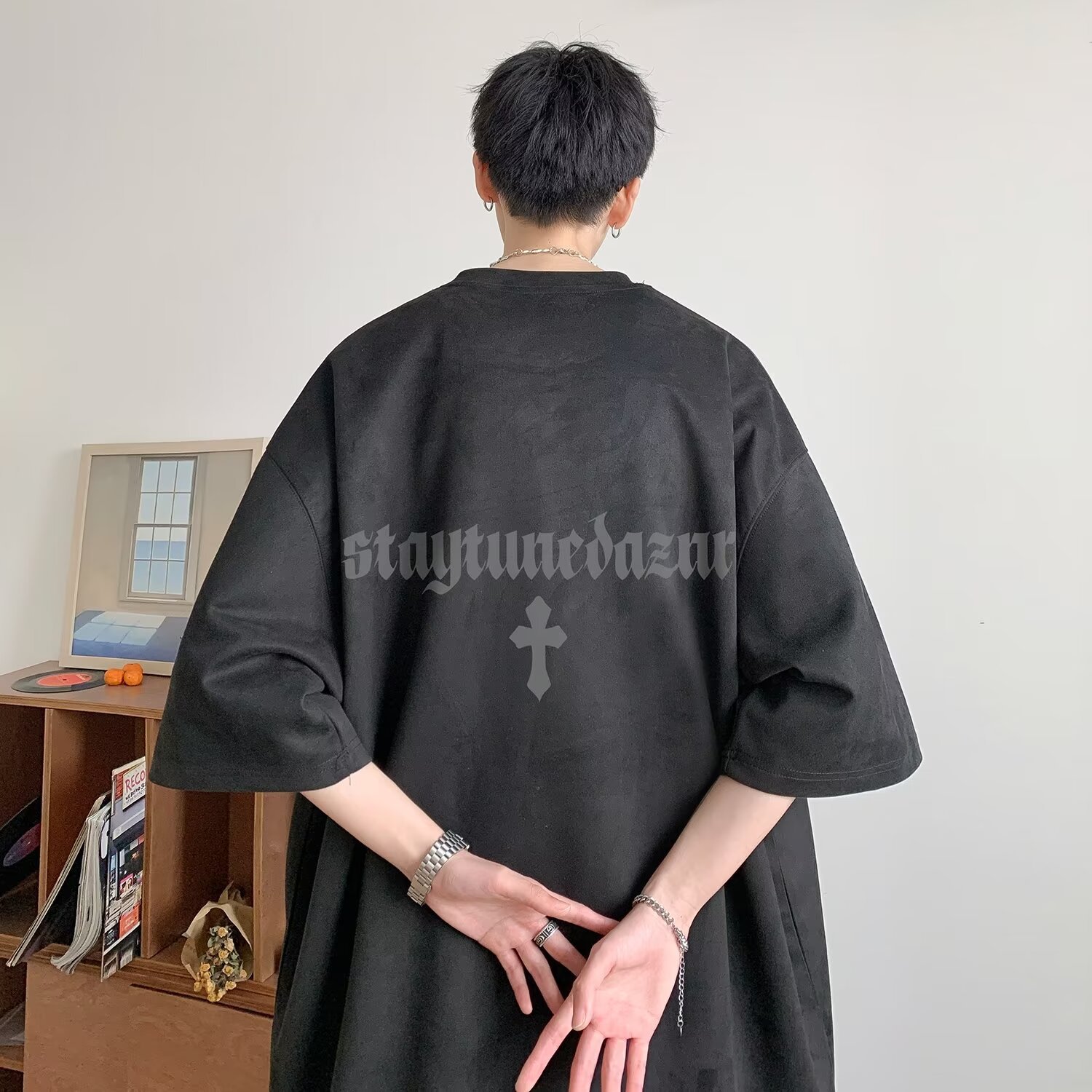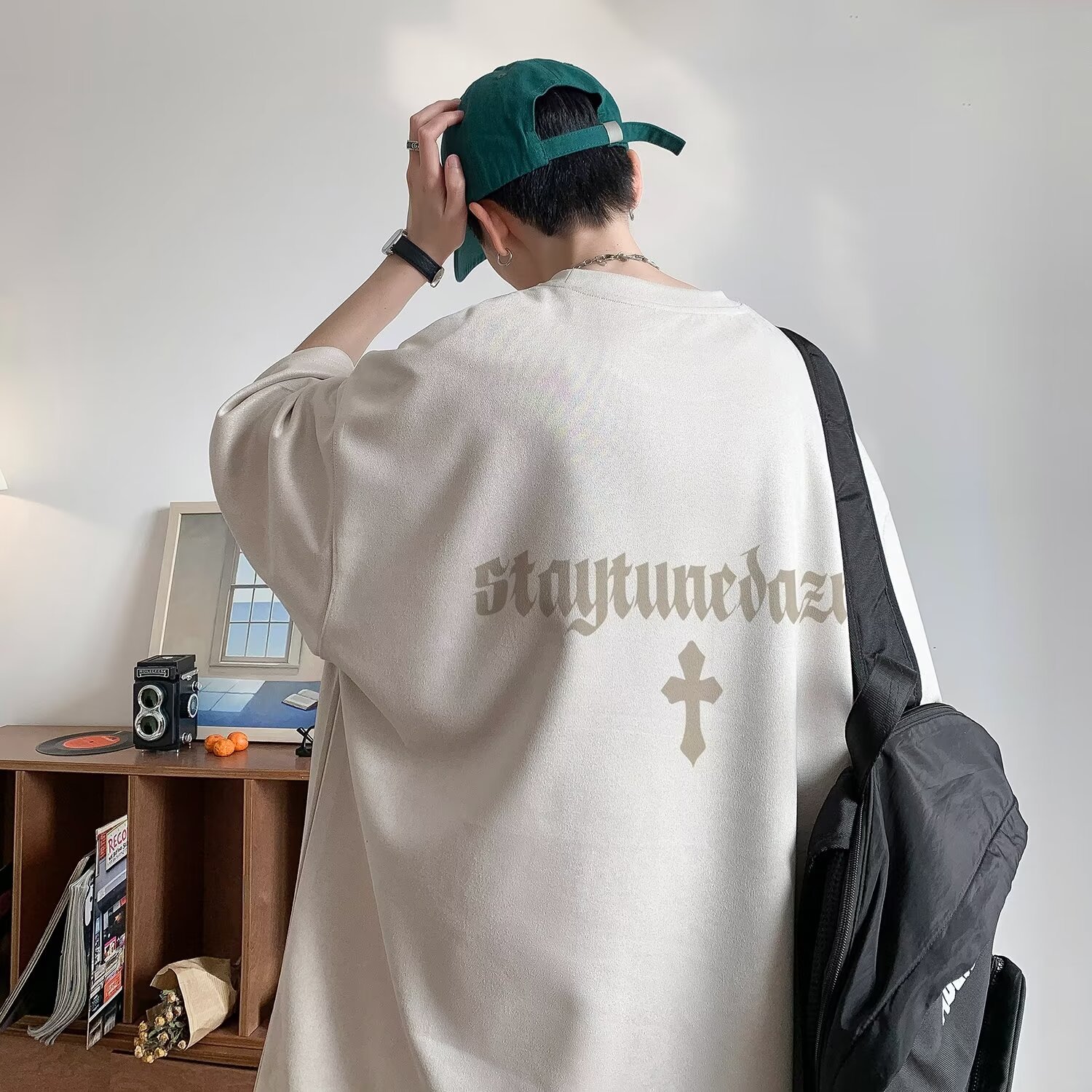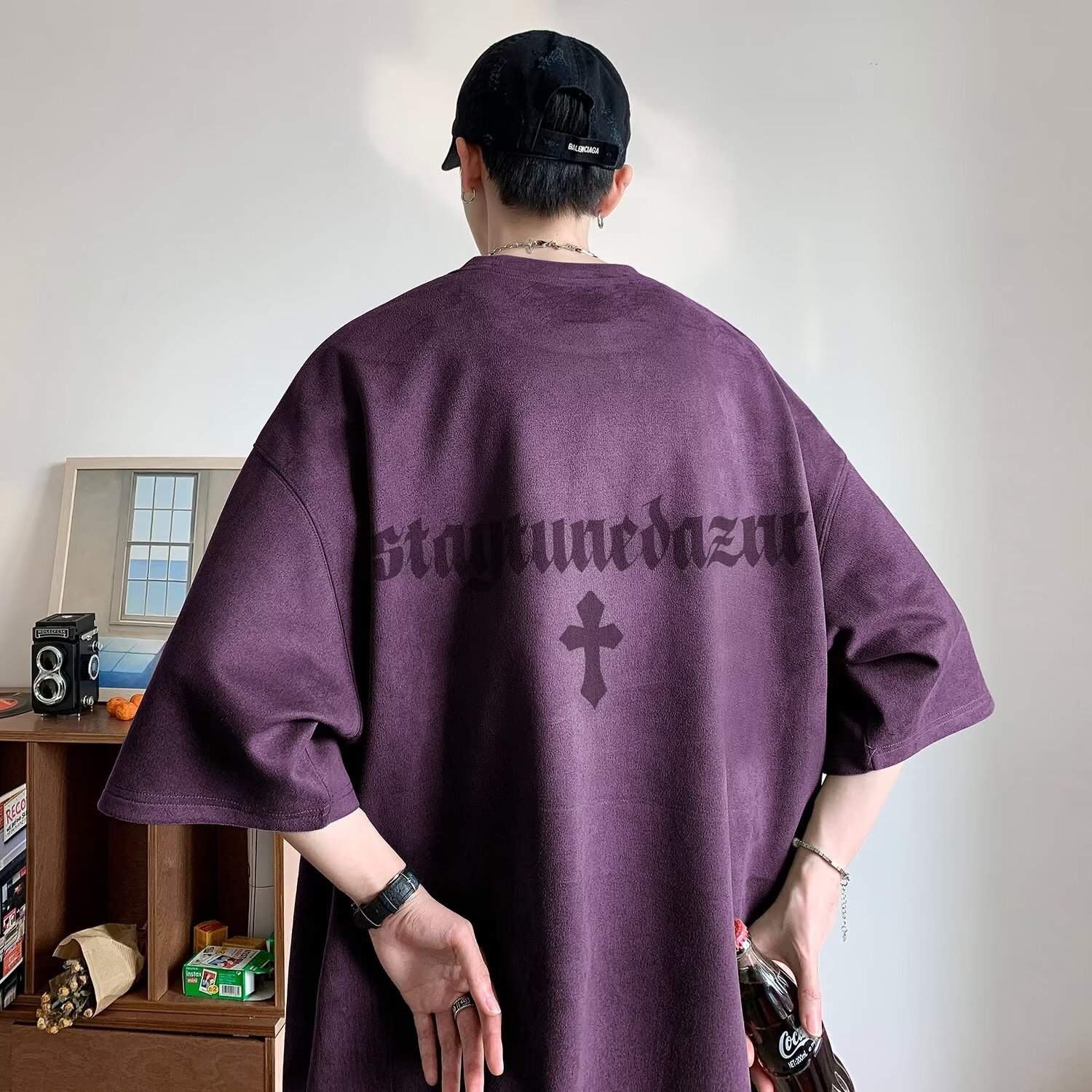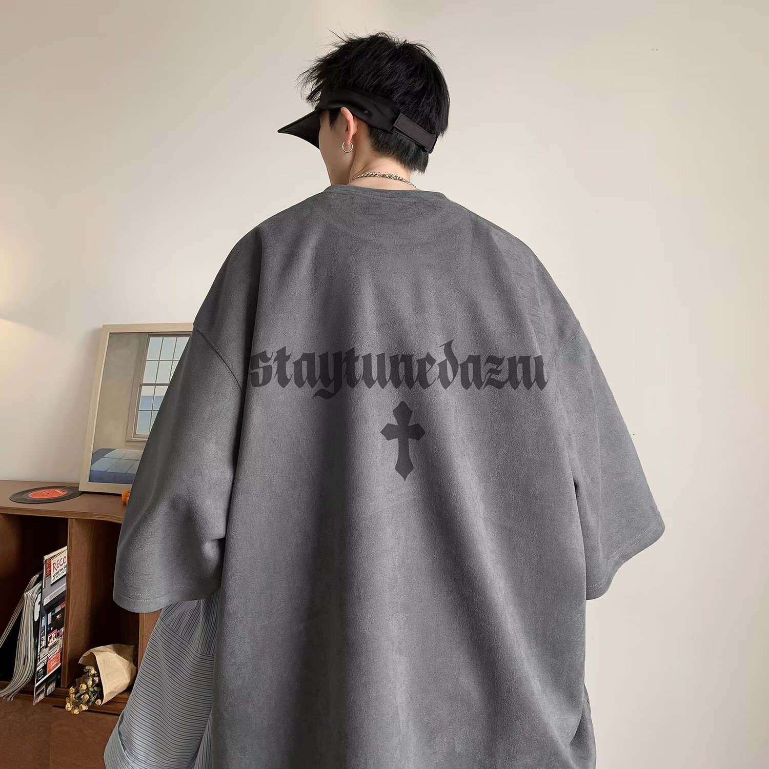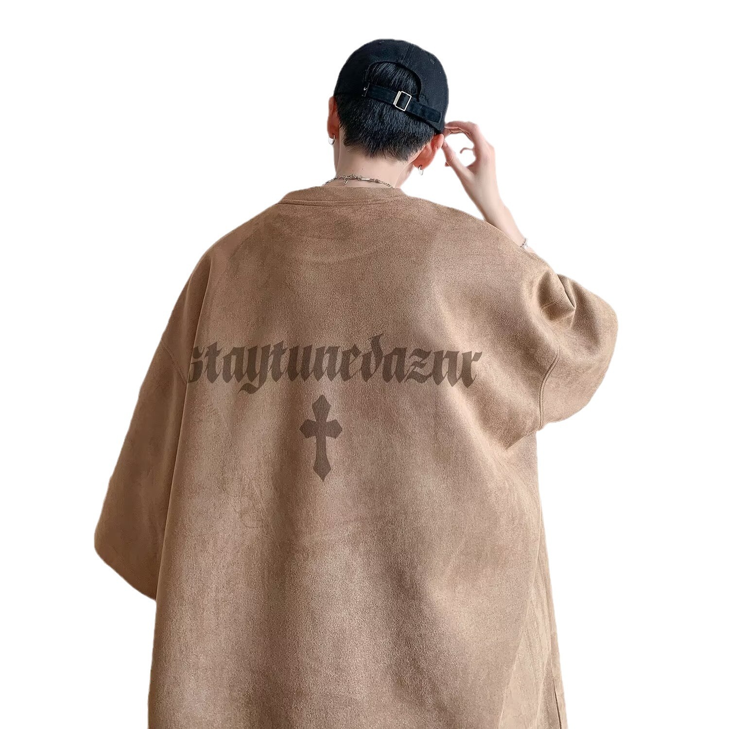 Главная страница > Летняя замшевая футболка с короткими рукавами мужской американский тяжелый 2025 новый прилив свободный oversize пятицентный рукав