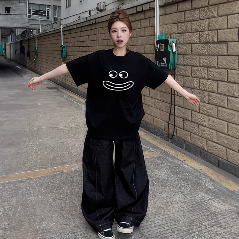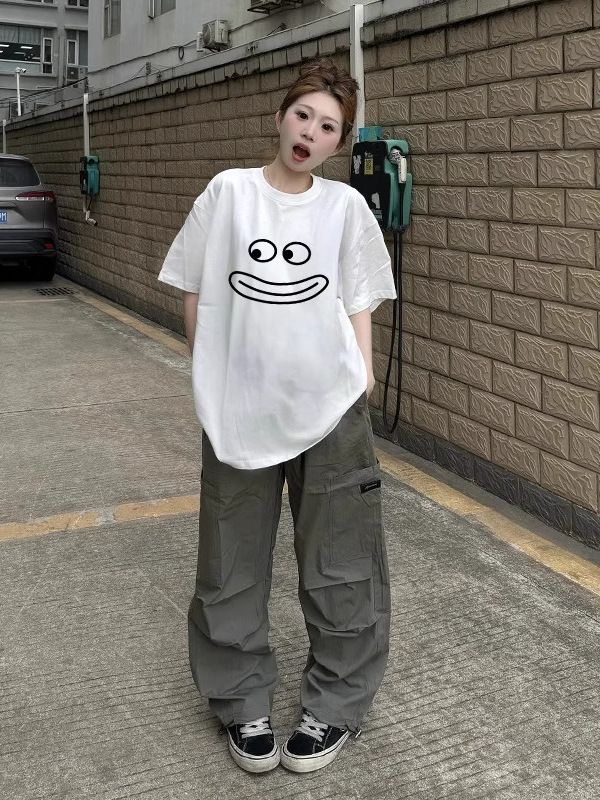 Главная страница > Шикарная корейская серая футболка с открытыми плечами, женская свободная и универсальная летняя футболка с короткими рукавами из чистого хлопка в консервативном стиле с принтом и половиной рукавов