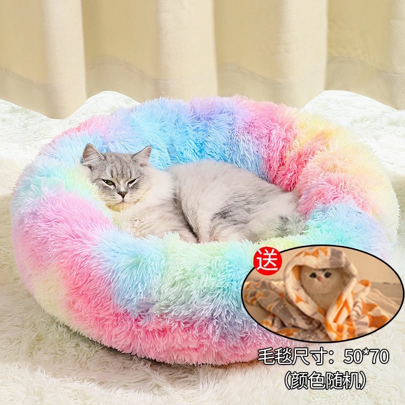 Плюшевое гнездо в виде пончика (цвет радуги) [бархатное и утолщенное] - бесплатное случайное одеяло