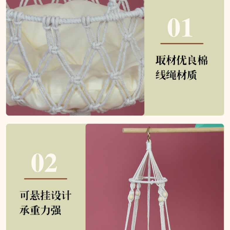 30#Одиночный гамак + S-образный крючок + белый ватный диск + деревянная доска