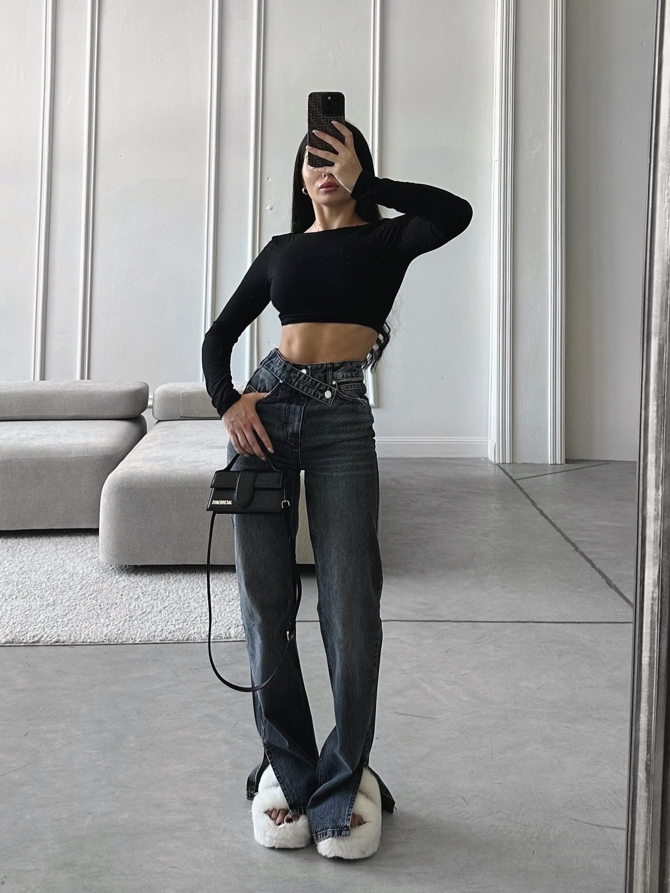 Главная страница > Amazon европейская и американская уличная девушка дизайн расклешенные брюки женские осенние высокие талии нерегулярные бедра новые джинсы
