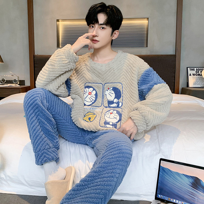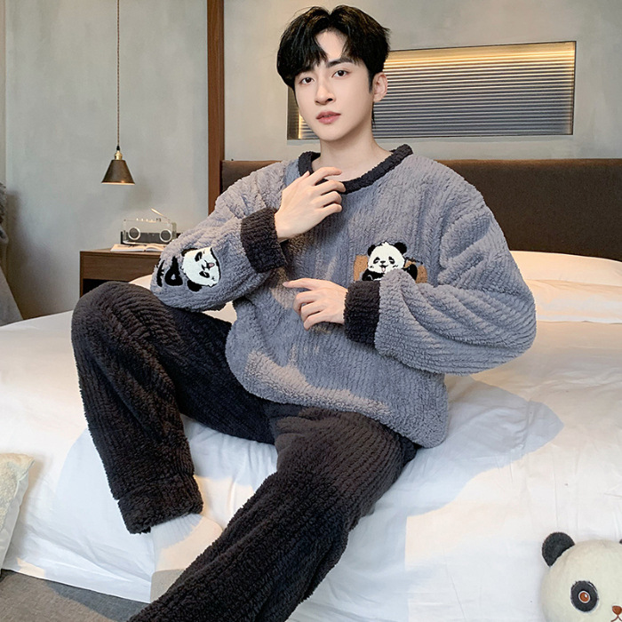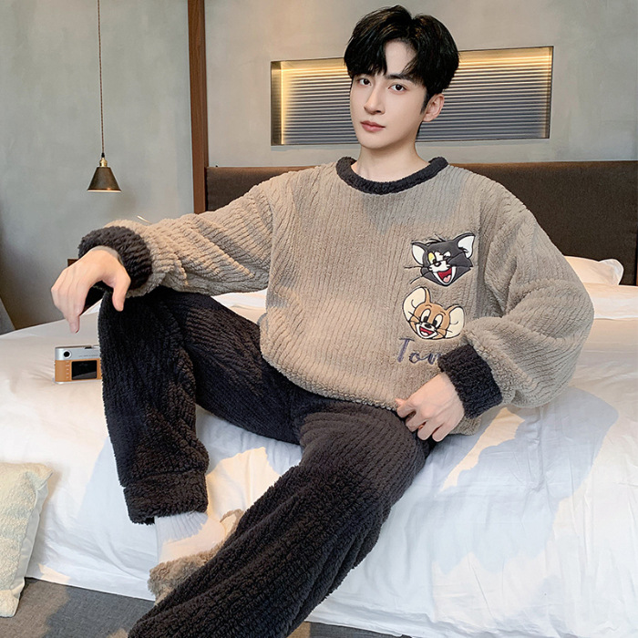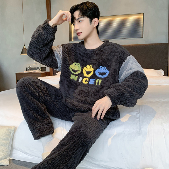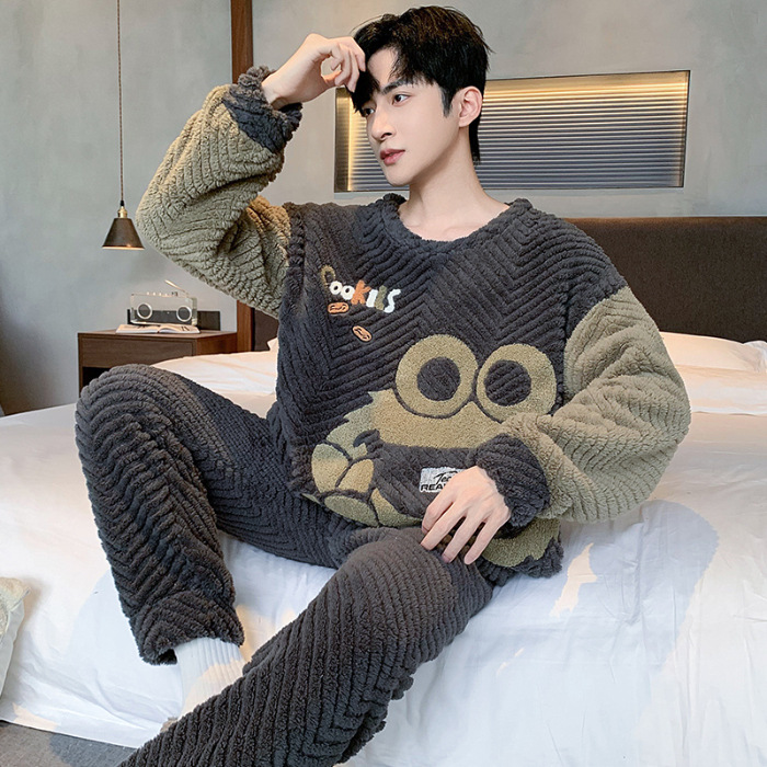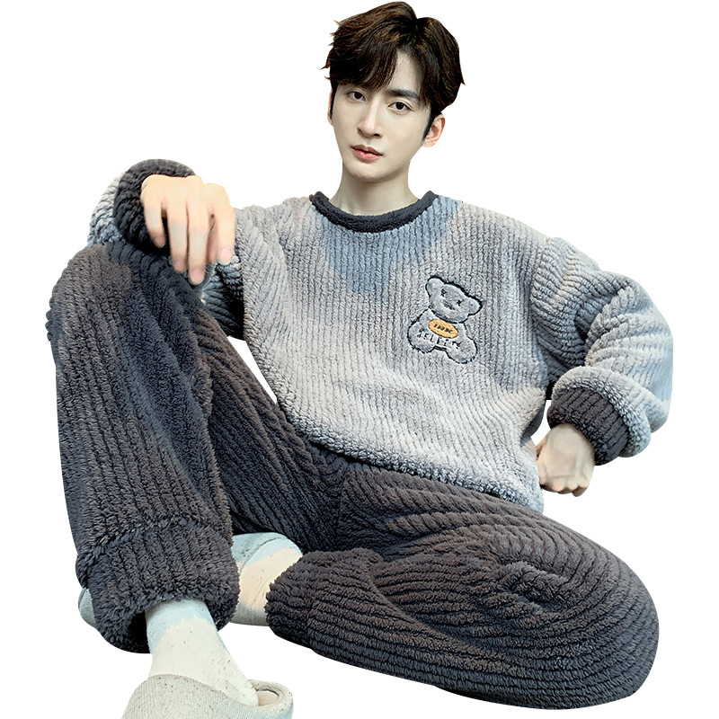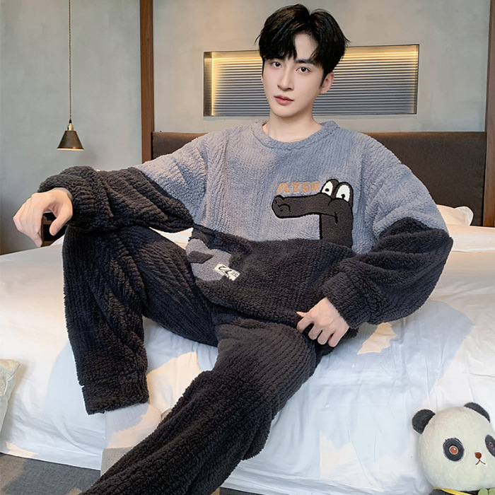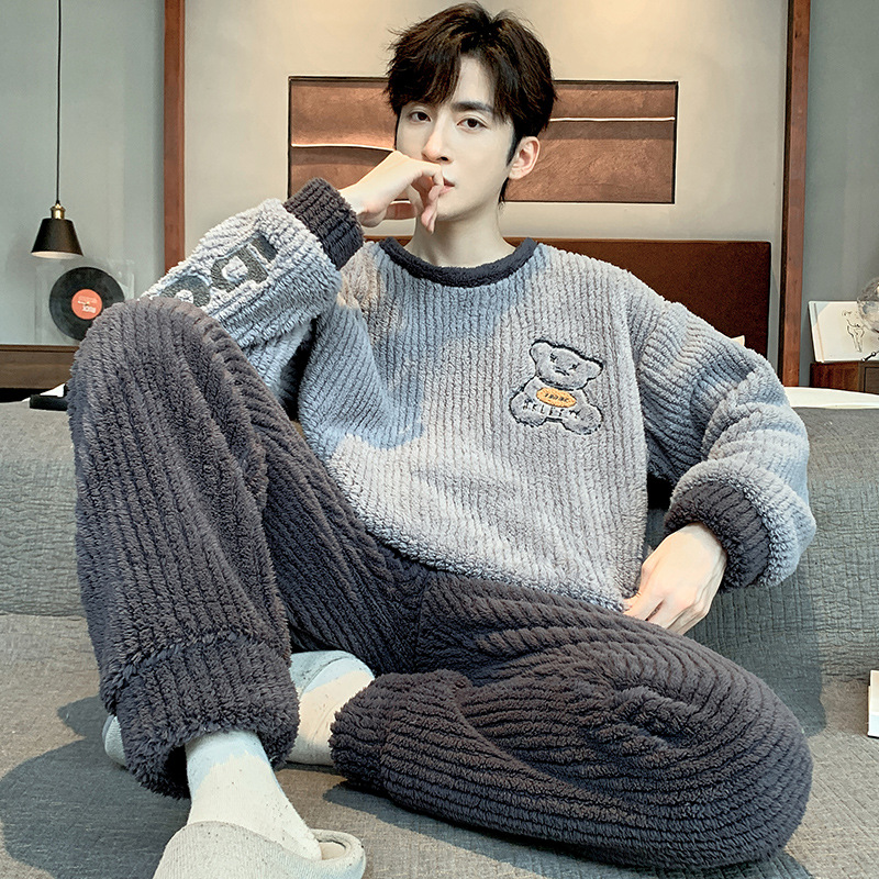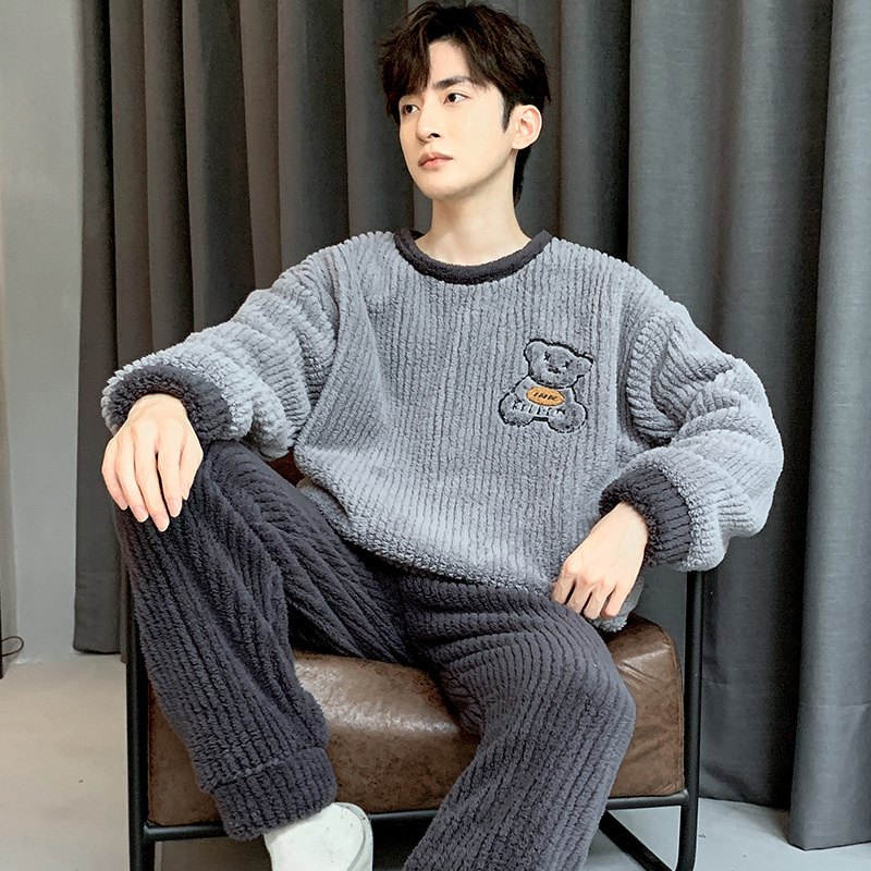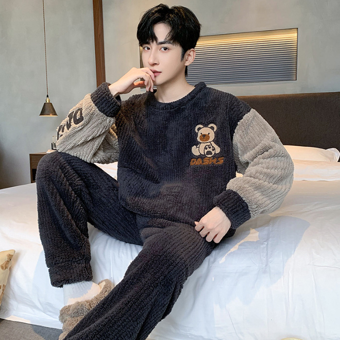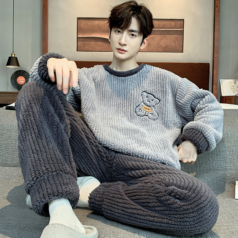 Главная страница > Коралловый бархатный пижама мужской осенью и зимой плюшевый набор с круглым вырезом