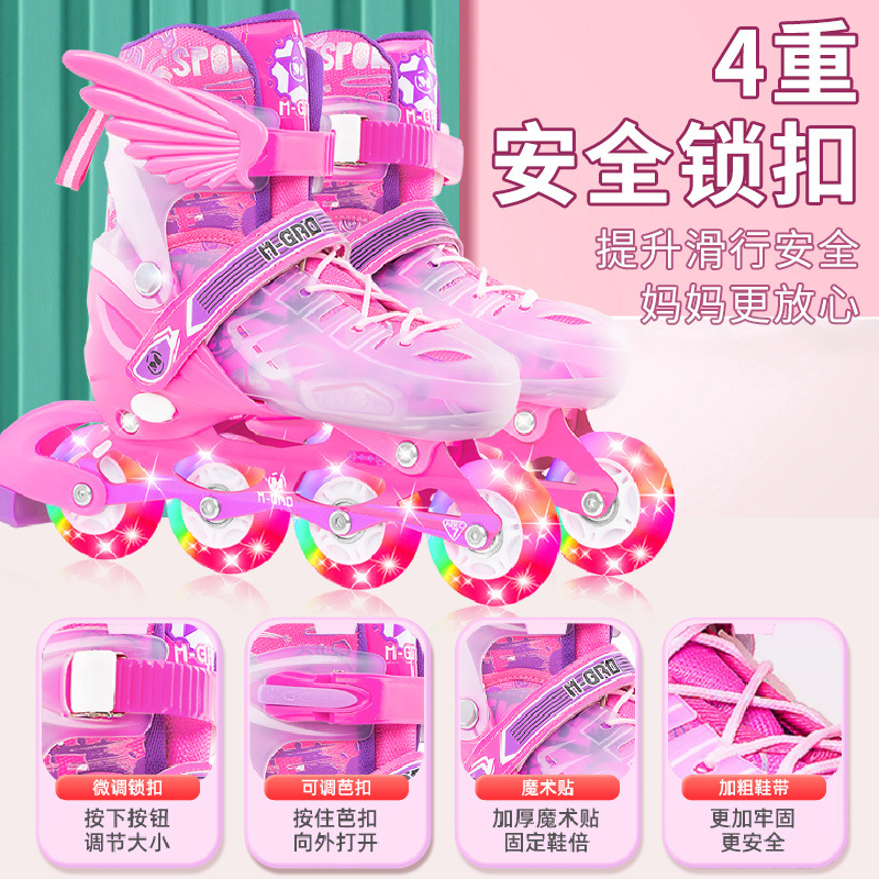 - Маленький размер (подходит для размеров обуви 25-31), восьмиколесный полный вспышка