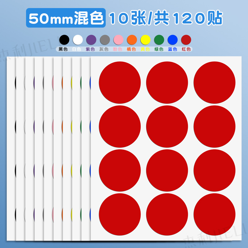 [Смешанный цвет 50 мм] 10 листов в общей сложности 120 наклеек