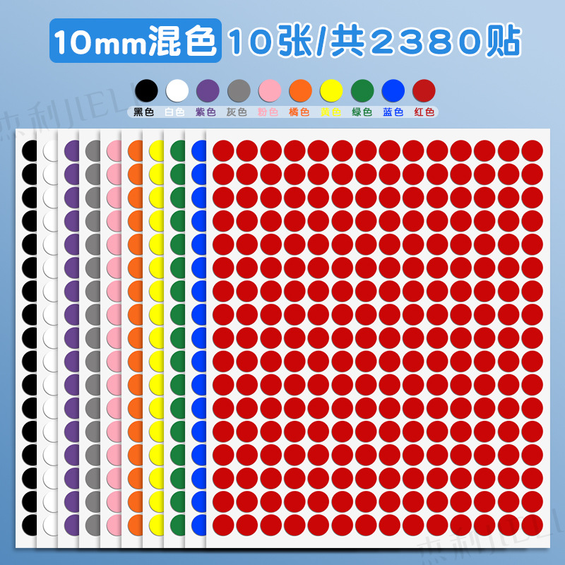 [Смешанный цвет 10 мм] 10 листов в общей сложности 2380 наклеек