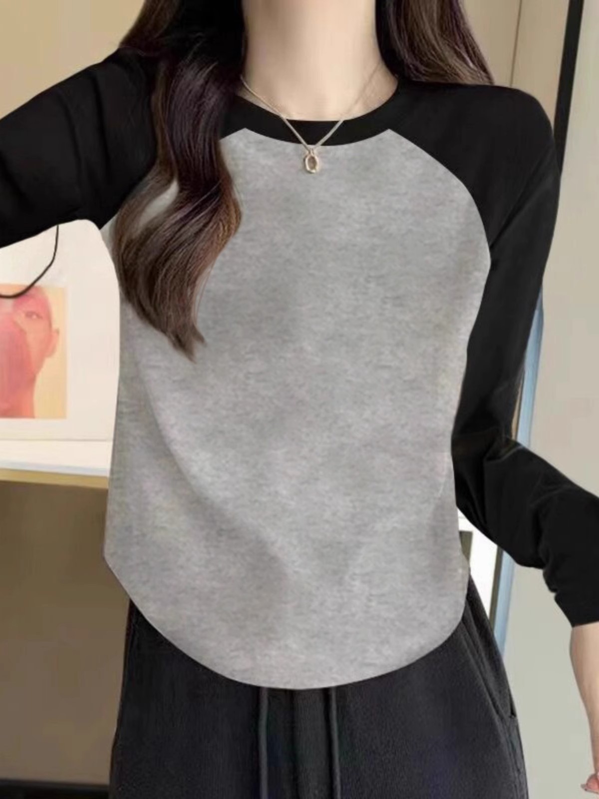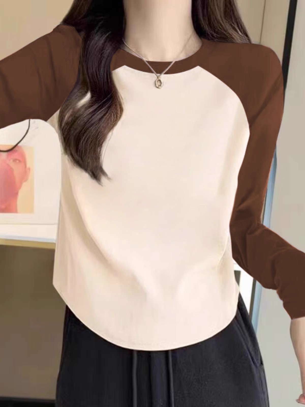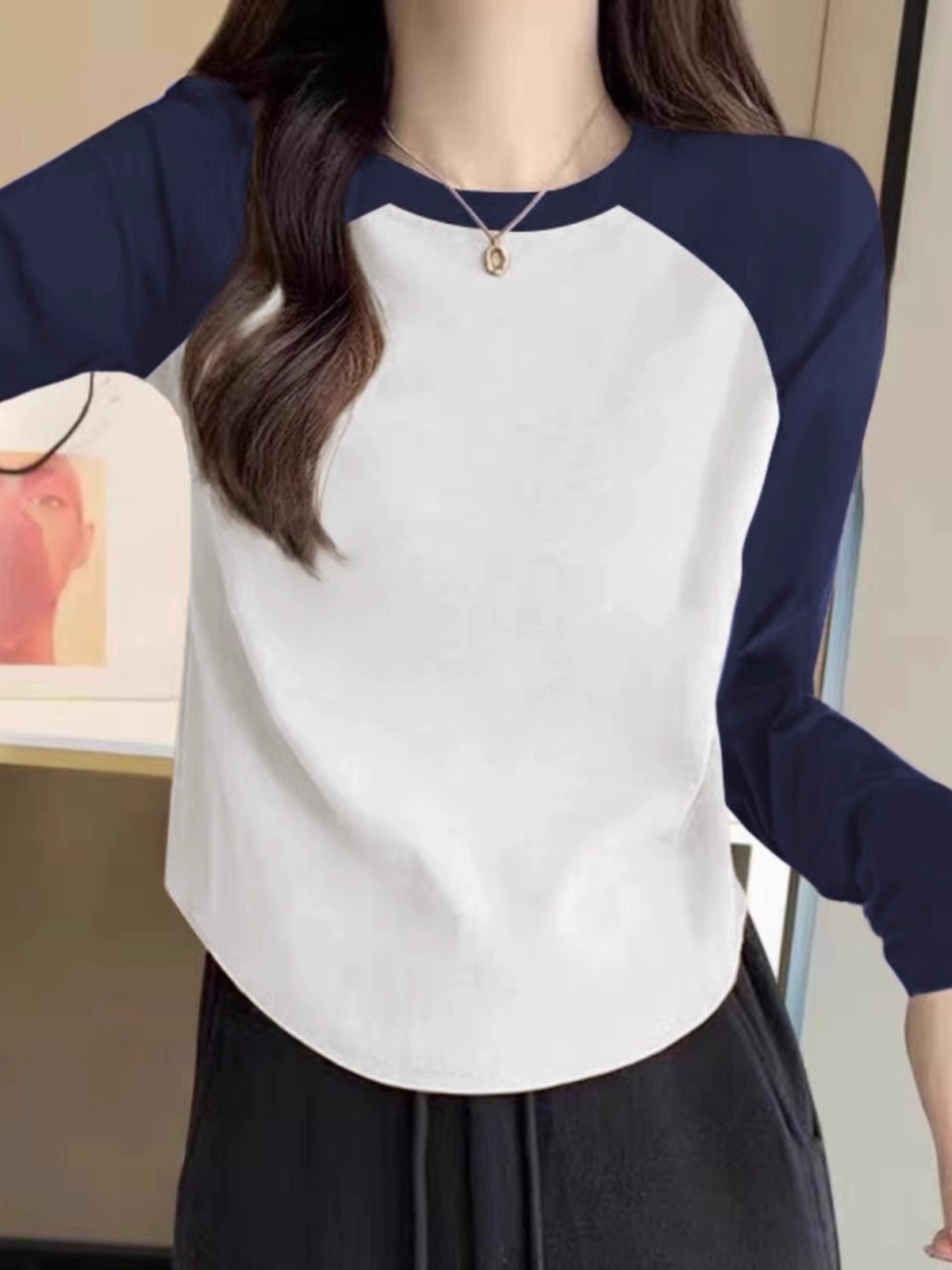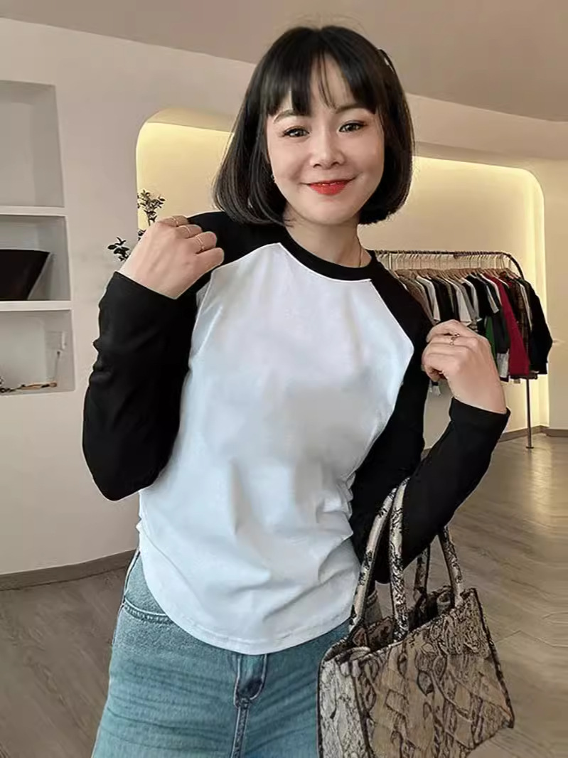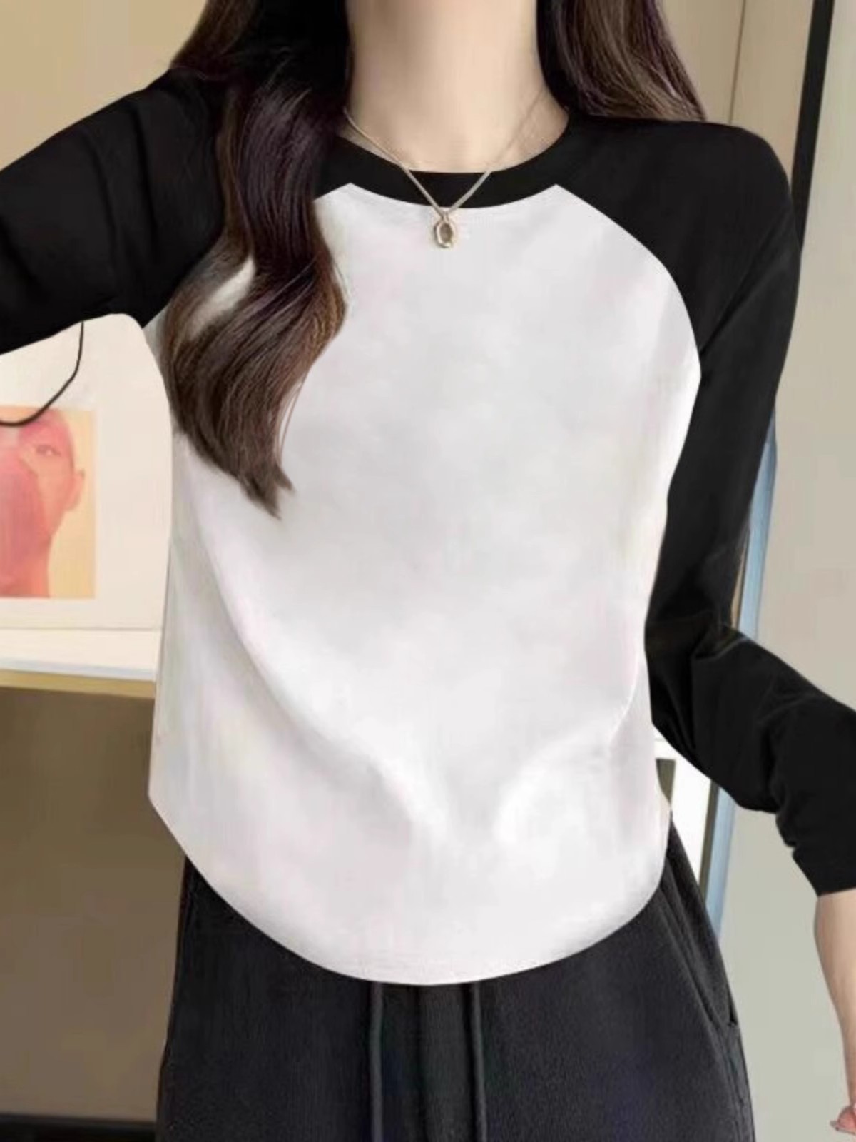 Футболка с длинными рукавами для женщин 2024 новая весенняя и осенняя сшивание с короткой нижней рубашкой осенний топ