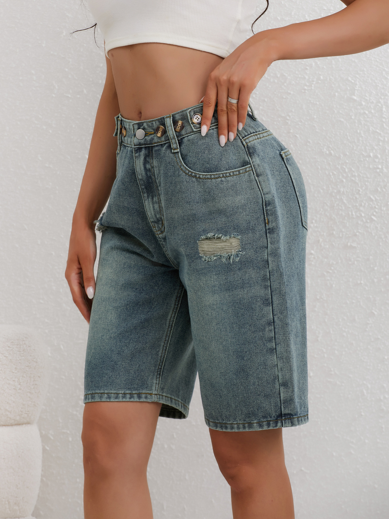 Главная страница > Трансграничные европейские и американские рваные брюки средней длины, свободные и тонкие, регулируемые свободные женские джинсовые брюки средней длины в форме груши.