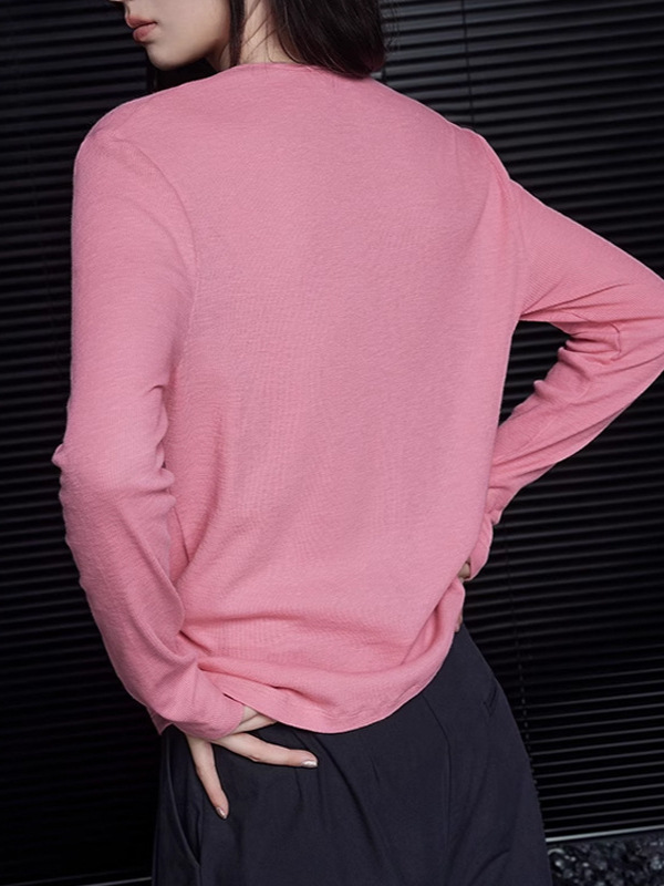 Главная страница > Розовая элегантная трикотажная футболка приталенного кроя с длинными рукавами для женщин, с уникальным дизайном, базовый слой для ранней осени 2025 года.