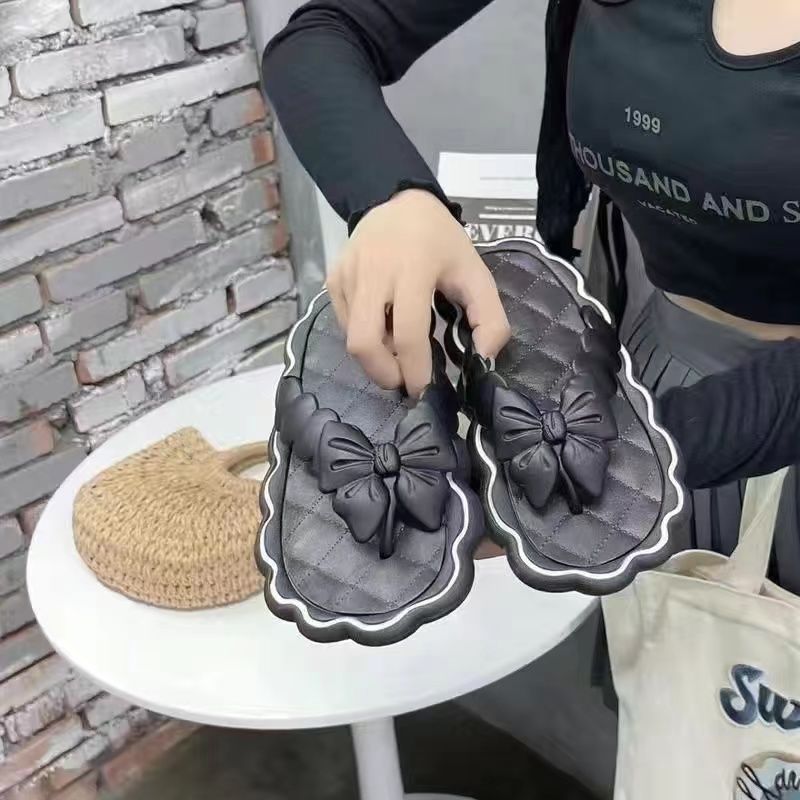 Главная страница > Милые женские шлепанцы с бантом, удобные, модные пляжные и домашние сандалии-балетки в стиле принцессы