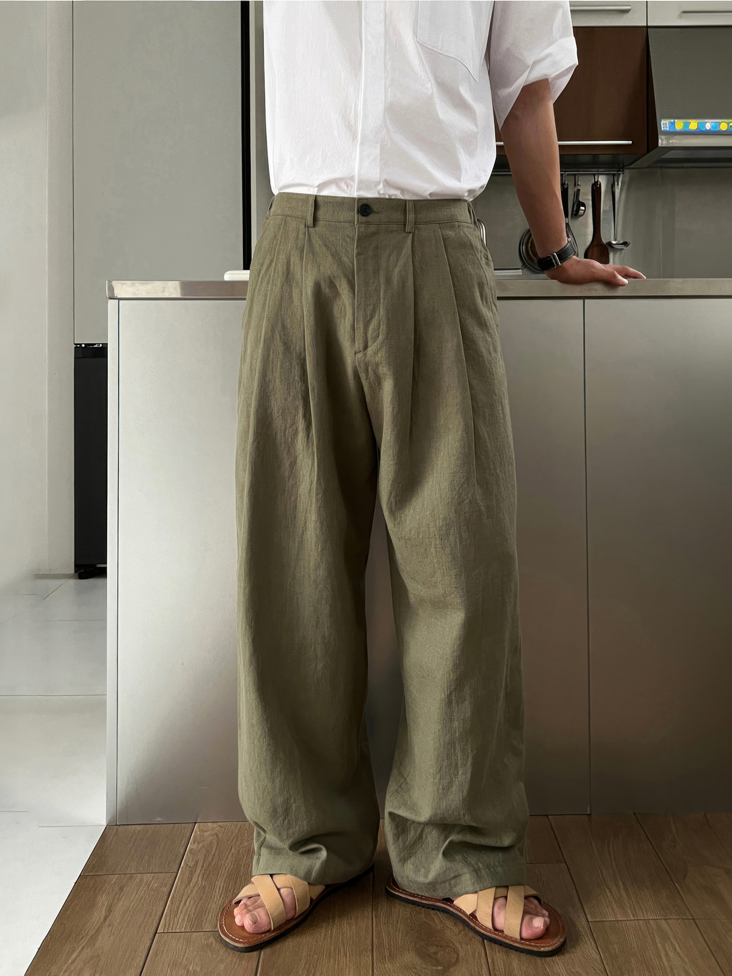 Главная страница > Армейские зеленые льняные повседневные длинные брюки для мужчин, новый летний японский стиль, высококачественные универсальные свободные прямые широкие брюки.