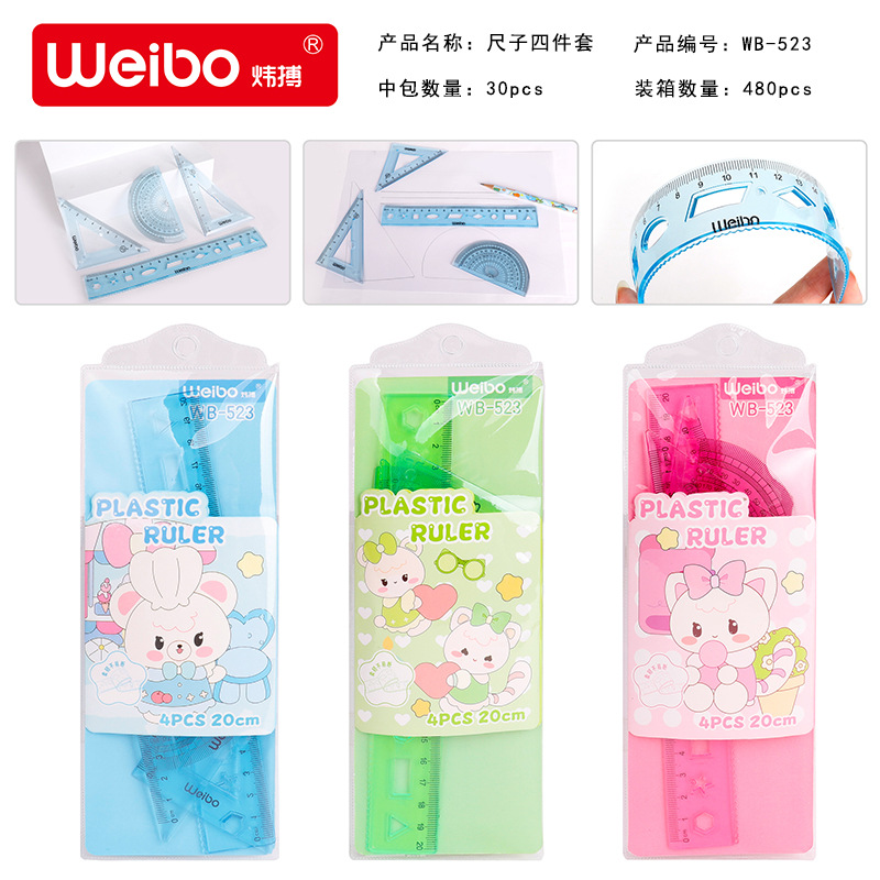 Weibo ученик начальной школы линейка костюм из четырех предметов набор канцелярских принадлежностей праздничный подарок школьные принадлежности мягкая линейка транспортир оптом