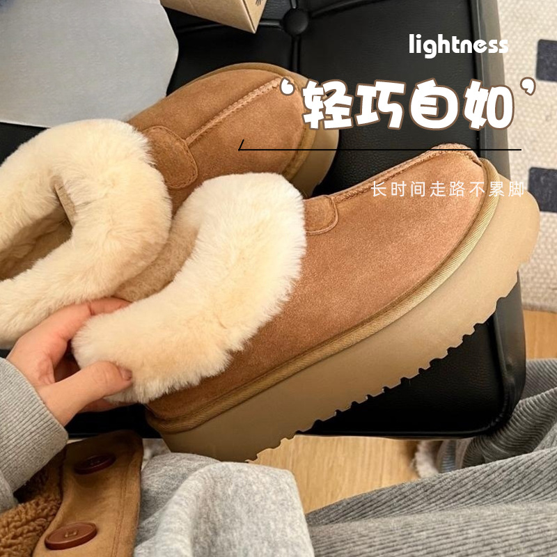 Овечья меховые снежные сапоги с толстой подошной женской башней