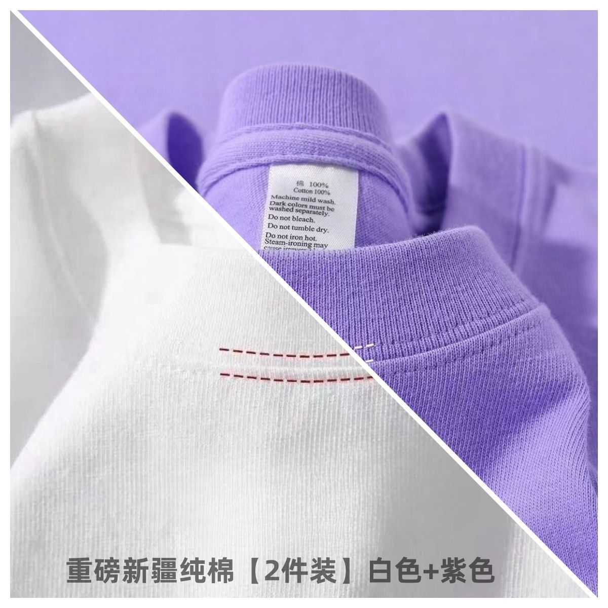 2 шт. [толстый хлопок с короткими рукавами] белый + фиолетовый