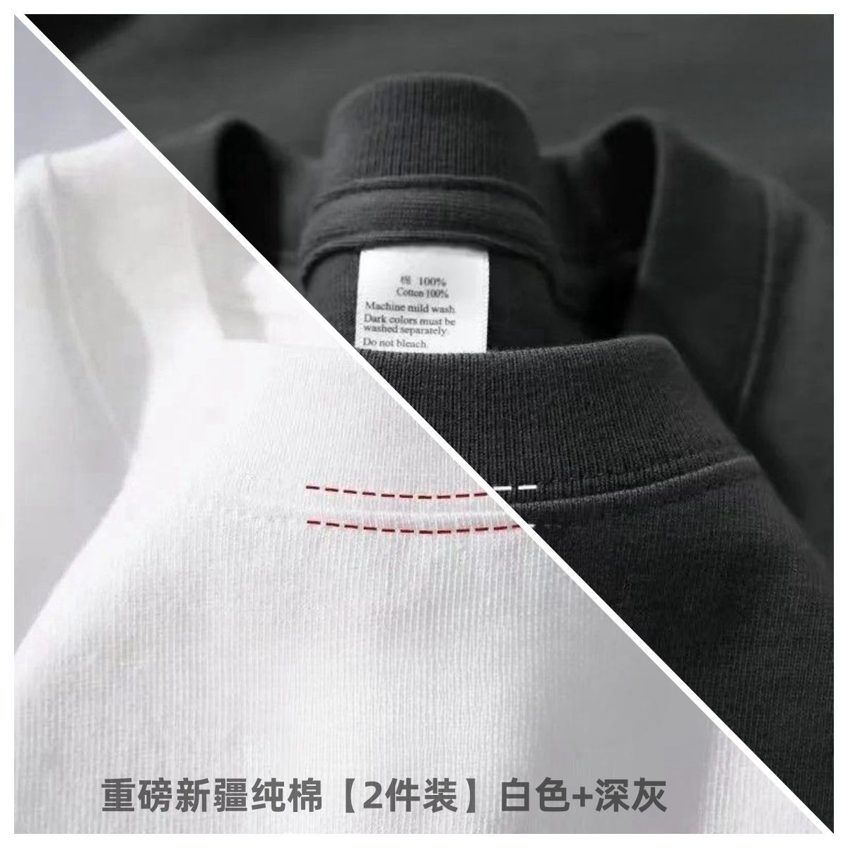 2 шт. [хлопок тяжелого веса с короткими рукавами] белый + белый