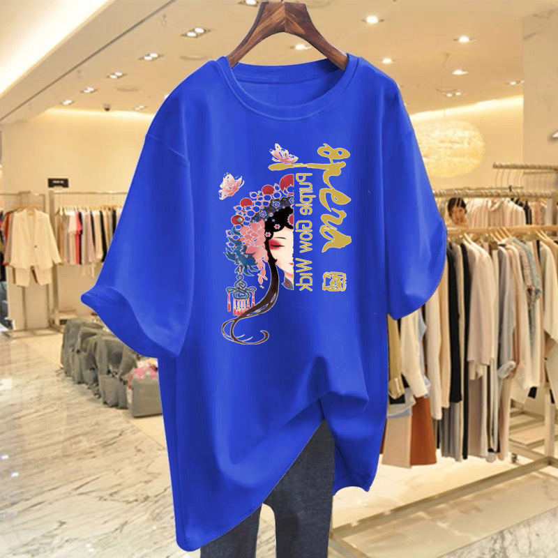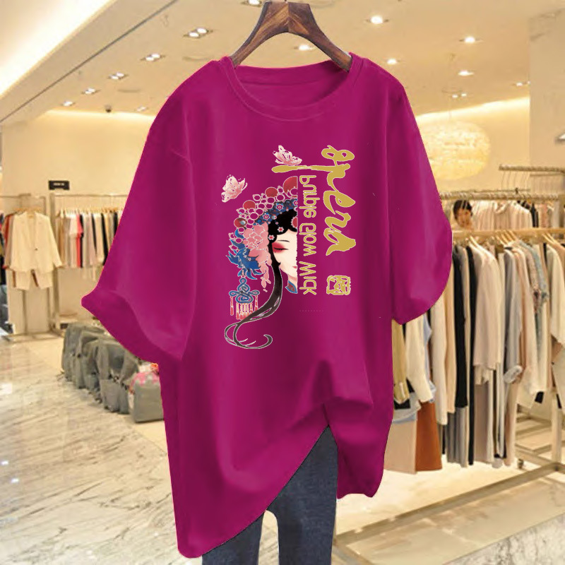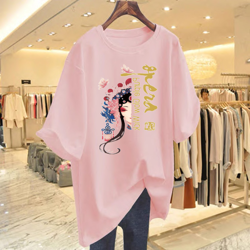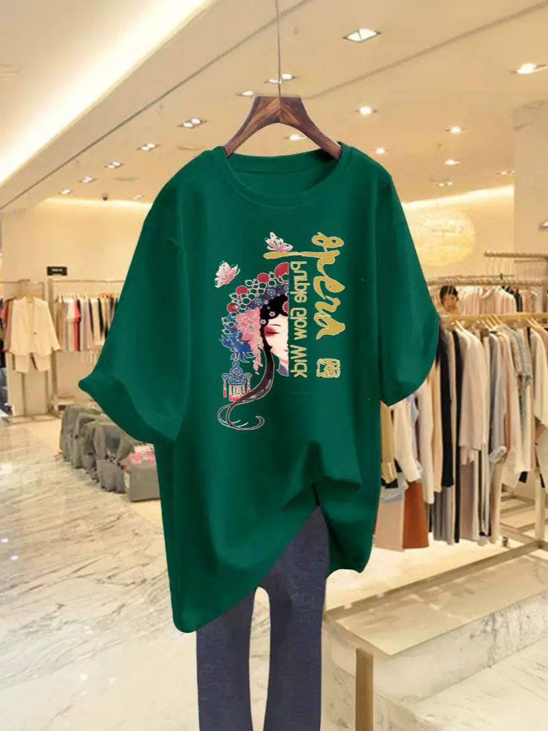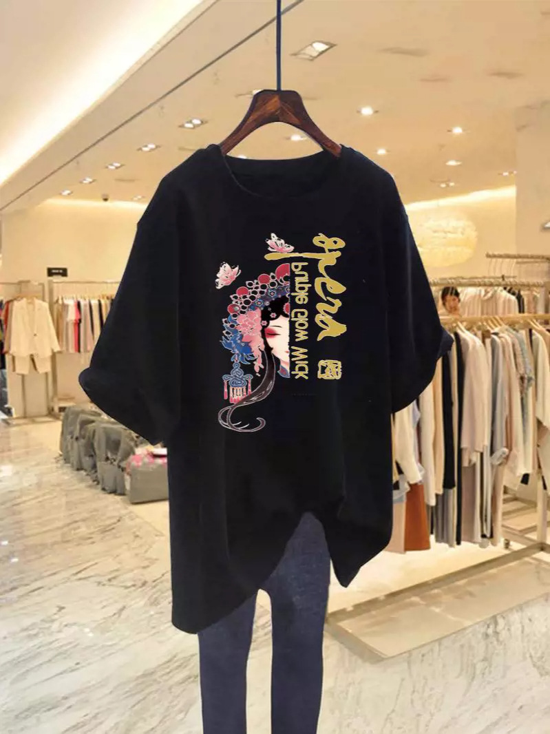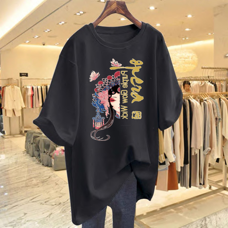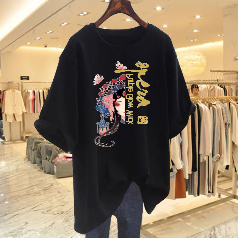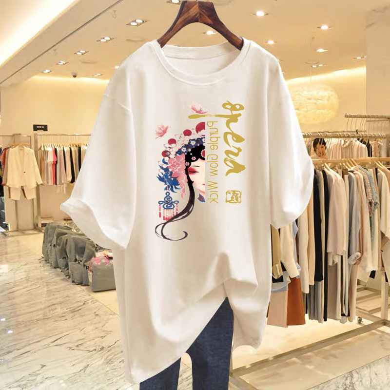 Главная страница > Китайская хлопчатобумажная футболка с короткими рукавами для женщин 2024 летняя одежда новый facebook принт свободный большой размер с половиной рукава