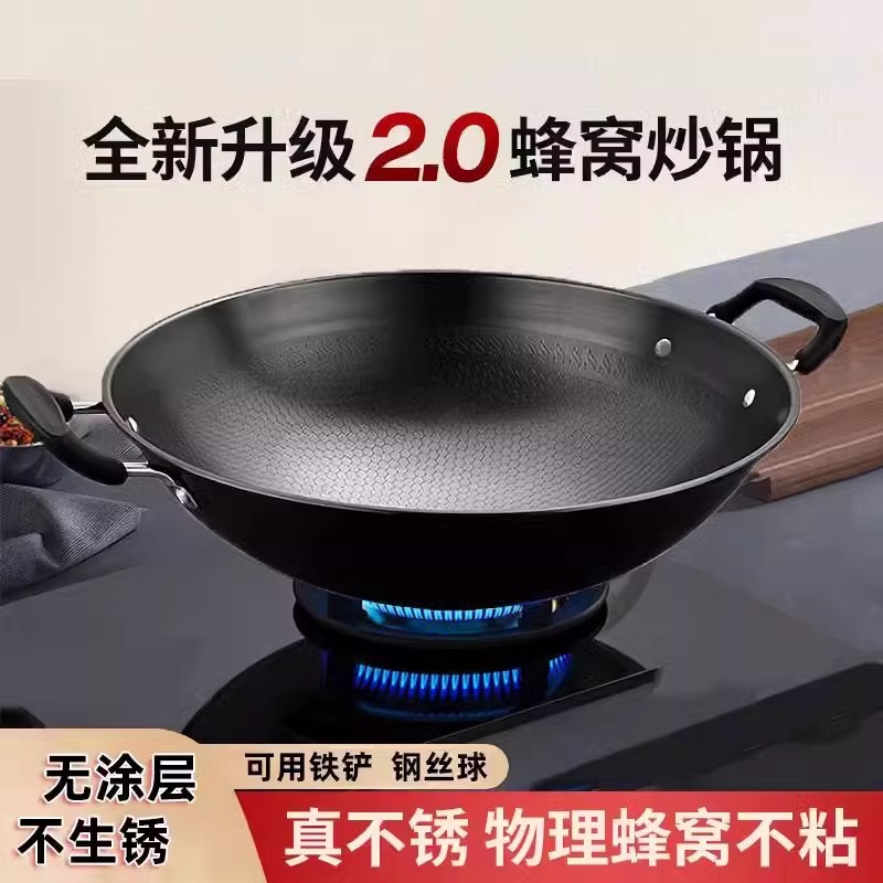Главная страница > Сверхлегкая сковорода с антипригарным покрытием и сотовой структурой, большой железный вок с двумя ручками для домашнего использования, круглое дно, без покрытия, сверхлегкая железная сковорода без ржавчины.