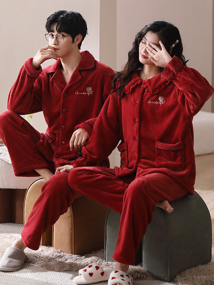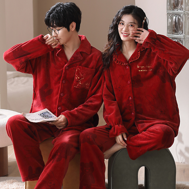 Главная страница > 2 комплекта свадебных пар пижам осень и зима коралловый флис утолщенный красный один мужчина и одна женщина Свадебная одежда костюм