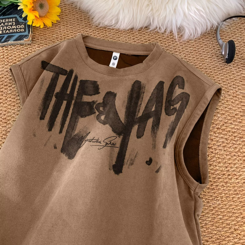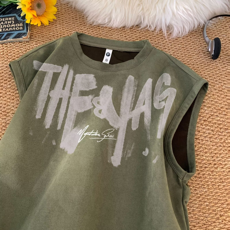 Главная страница > Американская футболка без рукавов жилет для мальчиков фитнес vintage толстовка тяжелая имитация замши высокого чувства свободного плеча