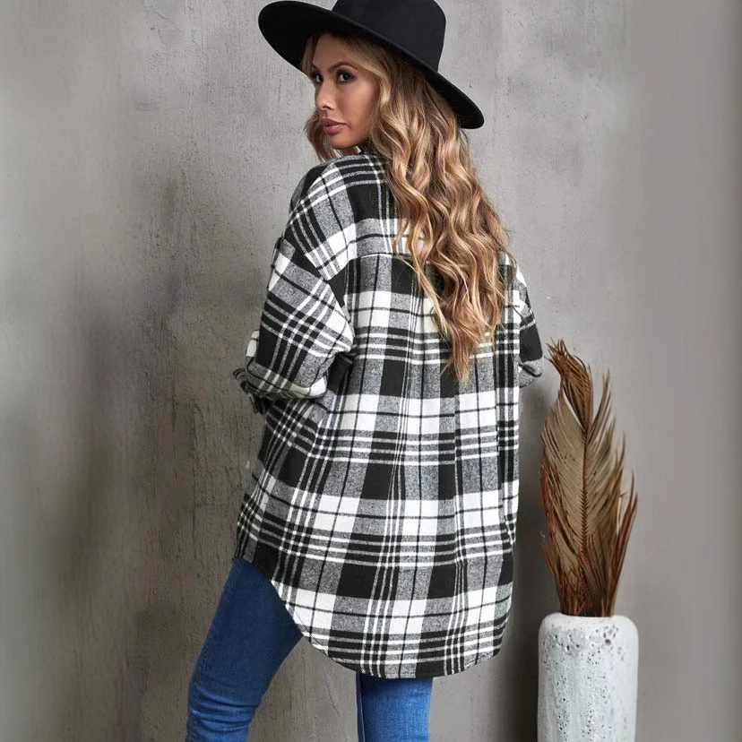 Главная страница > В наличии Трансграничная Внешняя торговля Amazon Осенне-зимняя однобортная рубашка с лацканами Пригородная Женская свободная шерстяная куртка в клетку