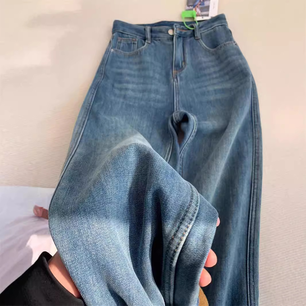 Главная страница > Ретро синие широкие ножки джинсы женский 2024 весна и осень новая высокая талия тонкая дикая свободная подвеска узкие прямые брюки