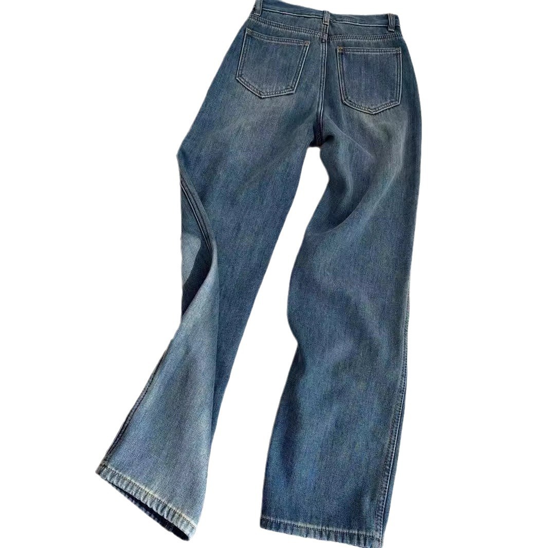 Ретро синие широкие ножки джинсы женский 2024 весна и осень новая высокая талия тонкая дикая свободная подвеска узкие прямые брюки