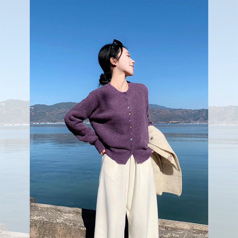 Главная страница > Французский фиолетовый свитер кардиган куртка женская осень-зима высокого уровня расслабленный мягкий клейкий трикотаж топ