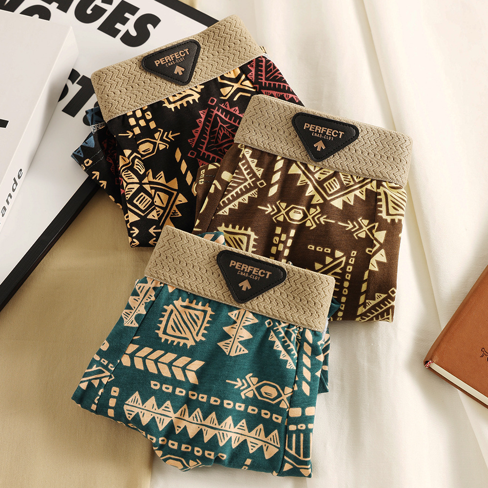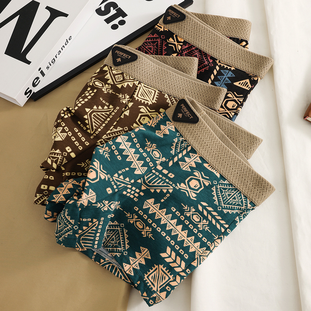 Американский тренд ретро мужское нижнее белье индивидуальность майя принт хлопчатобумажные брюки средней талии, боксерские шорты
