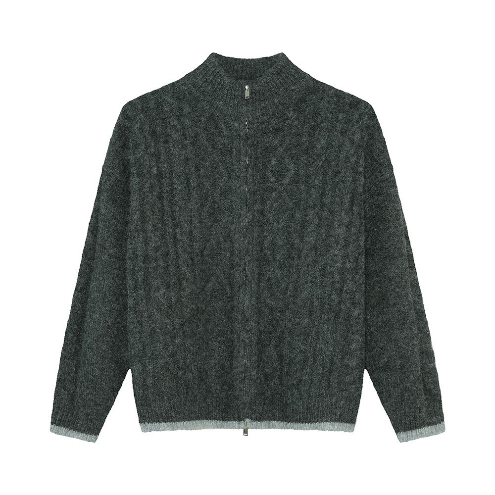 Главная страница > MTLCLOTHES Мужская одежда | Новые зимние ленивые двойные молнии полувысокого воротника свободного трикотажного кардигана